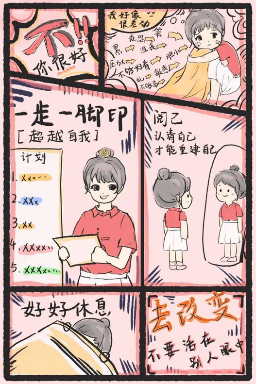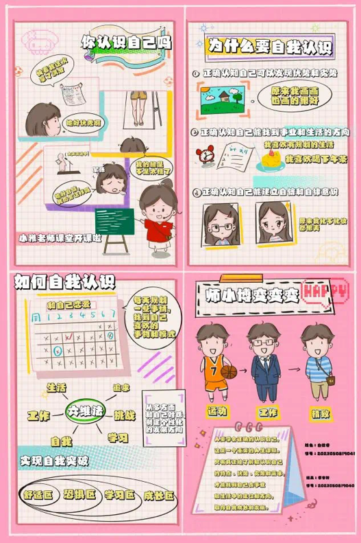 在本次活动中,同学们围绕自我认识、人际交往、情绪管理、压力管理等主题展开创作,涌现出许多兼具艺术性与科普性的优秀作品。有的作品以清新的插画传递情绪调节技巧,有的用幽默的漫画解读人际沟通之道,还有的通过学校IP形象“师小博”“师小雅”演绎心理成长故事……每一幅作品都凝聚着创作者对心理健康的独特思考与艺术表达。