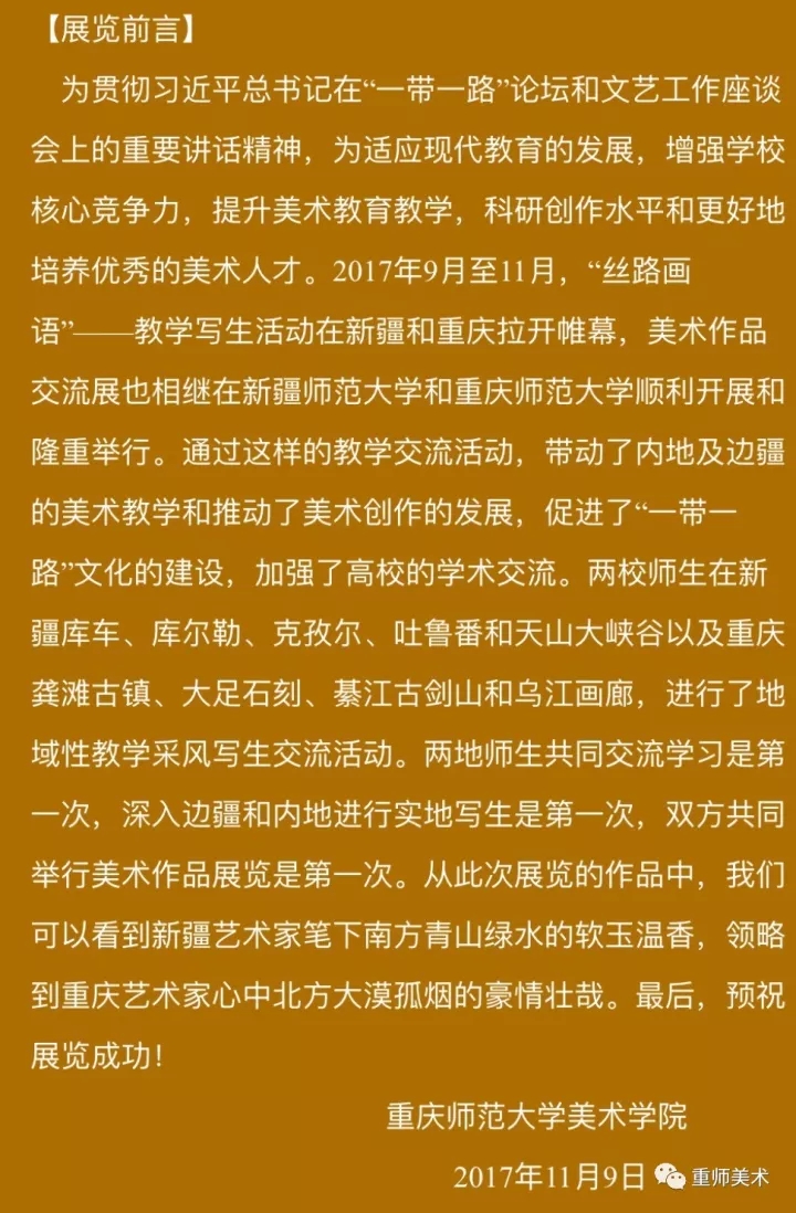 "丝路画语——重庆” 新疆师范大学 重庆师范大学 美术教师教学写生交流展