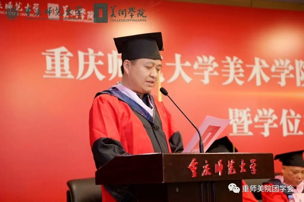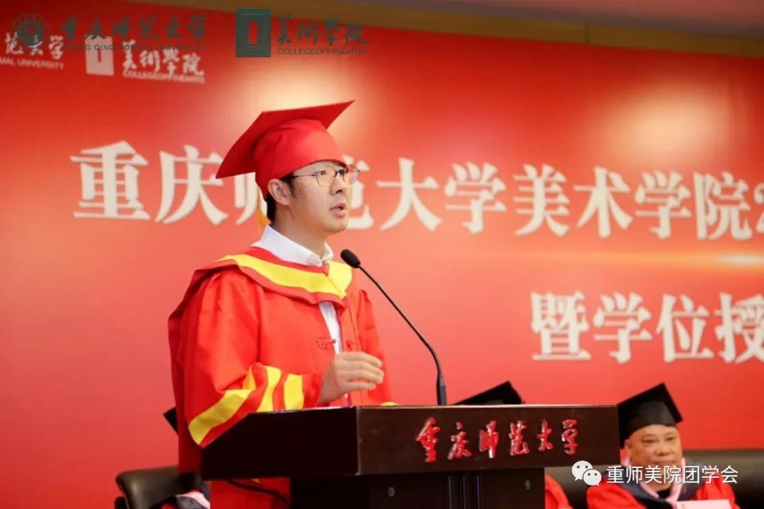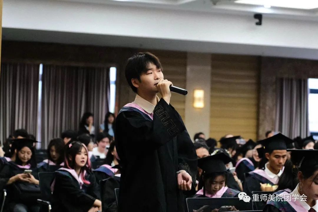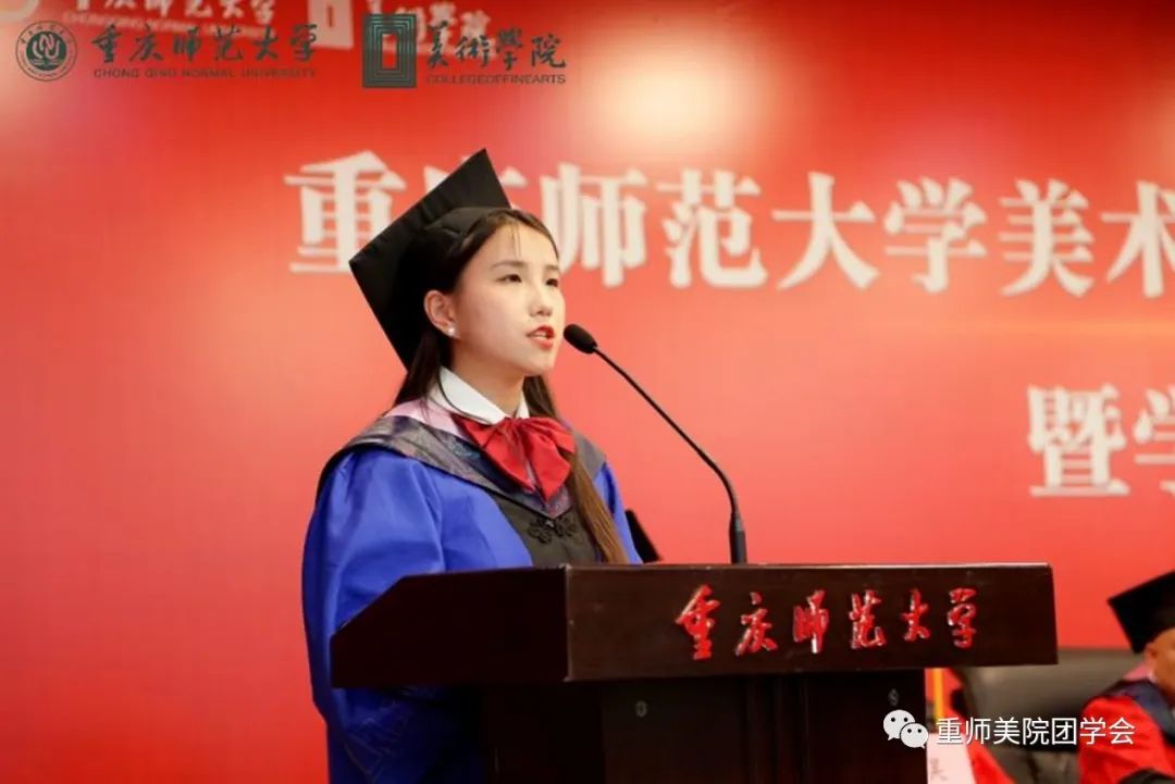 杨凯亿同学说到“时间之河川流不息,每一代青年都有自己的际遇和机缘”感慨着来自五湖四海的莘莘学子与重师相知相遇。师恩难忘,感恩老师们带领大家发现美、创造美、享受美,希望同学们在探索“人文、学术、创意、阳光、美丽”院训中接续奋斗,追求卓越。