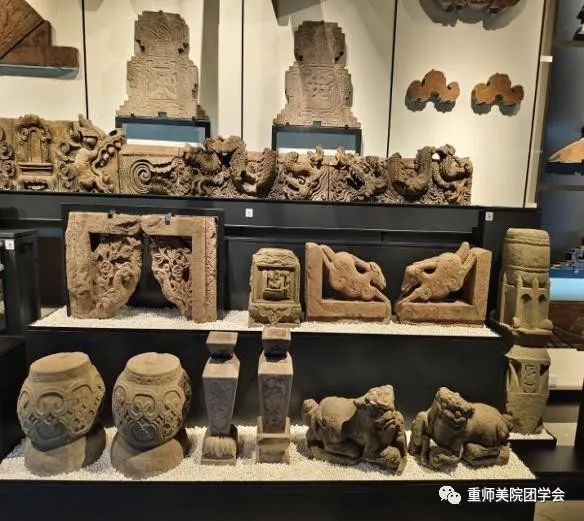 在“巴蜀地区古建筑发展史”展陈区,以巴蜀地区建筑风格的发展为主,展现了山地建筑与周边地区建筑文化碰撞;在“巴渝地区古代建筑装饰艺术”展陈区,通过巴渝地区建筑中的隔扇门窗、柱础、撑拱、驼峰、垂花等装饰物件上的雕刻图案,展现巴渝地区传统建筑中的雕刻装饰技艺;在“古代巴蜀建筑类型与形态”展陈区,通过古代巴蜀地区城门城楼、场镇建筑、巧渡码头等具有代表性的文物及图片,展现建筑梁架的艺术结构来细说建筑类型与形态;在“复兴寺历史文化与迁移保护成果”展陈区,师生们深刻感受到百年古刹的沧桑变化。
