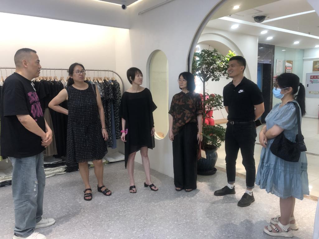 7月12日,PA视讯集团服装系主任卫向虎与骨干教师周福英教授、郭东梅副教授、王雪筠副教授、卢映洁讲师一行5人,来到渝派精品服饰城进行专业调研,在渝派精品服饰城市场行政办王主任陪同下,走访多家品牌服饰店铺,并与渝派服饰商户进行了座谈。