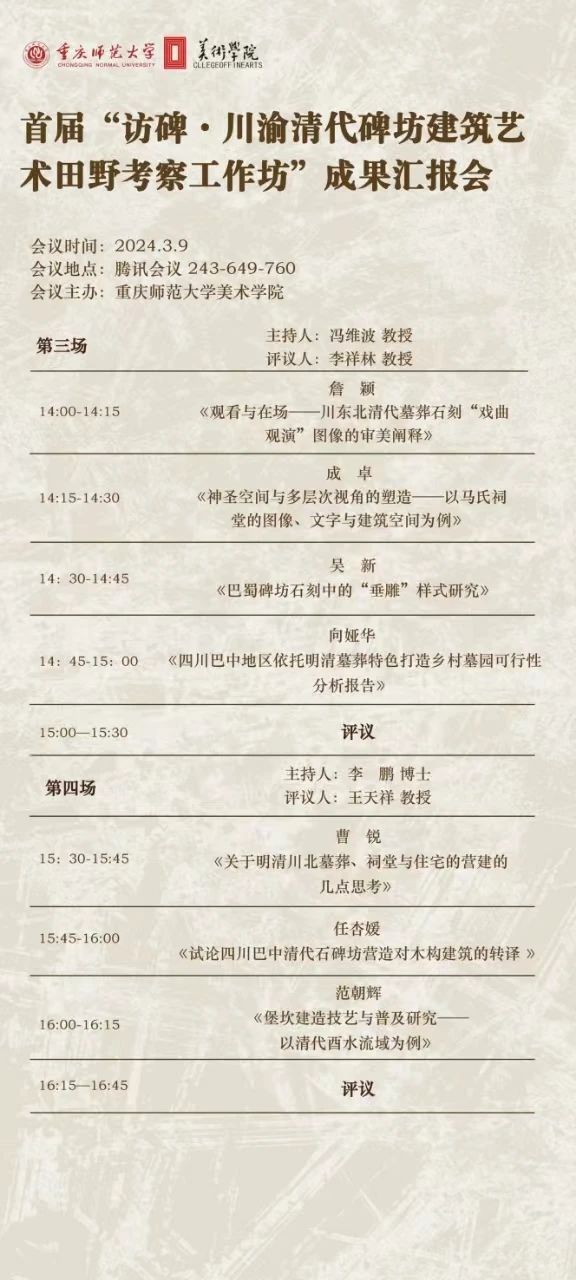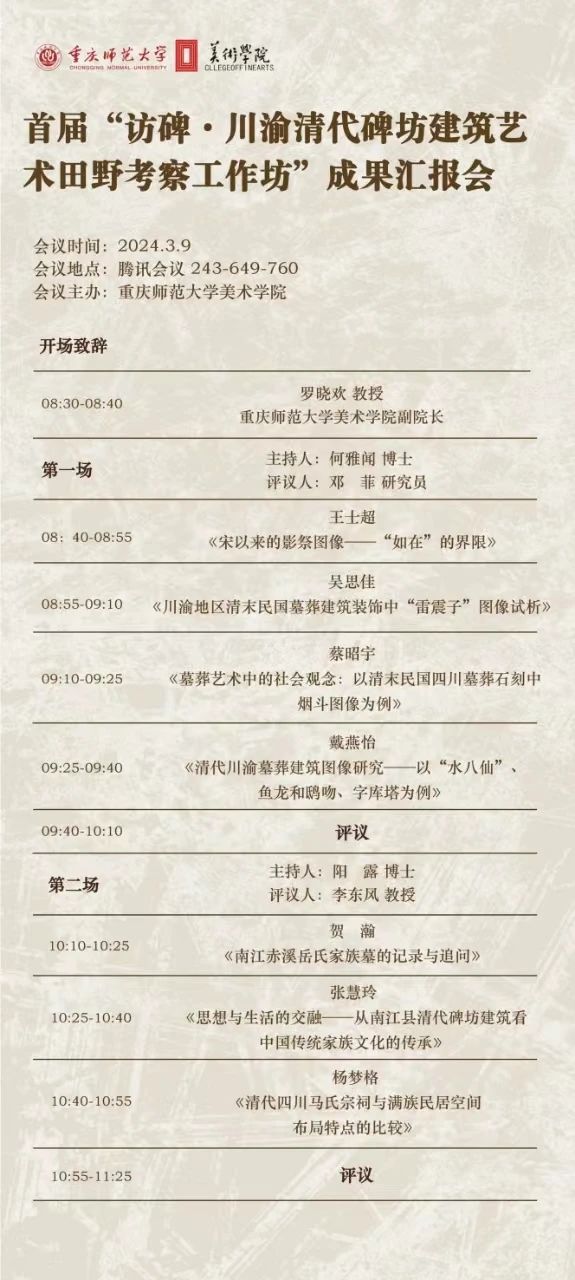 【论坛通知】首届“访碑·川渝清代碑坊建筑艺术田野考察工作坊”成果汇报会