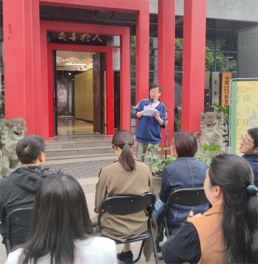 美术学院张为民副院长指出,此次课程成果展,离不开老师们精心的教学设计,离不开同学们的辛勤付出,也离不开学院的各方面支持。当然最重要的是此次课程成果展,做到了将中华优秀传统文化与教学设计和教学创作相结合,贯彻了习近平总书记提出的新时代美育理念“坚持以美育人,以文化人”。展览利用重庆市大圆祥博物馆丰富的民间美术资源,在创新和转化上形成了自己的特色。展出的作品,从传统立体手工剪纸工艺,到现代数字绘画的运用,再到文创产品的制作,清晰呈现了一条从传统到现代的发展线路,并且体现了大中小学融合一体化发展,育人价值高,十分有利于为基础教育赋能。