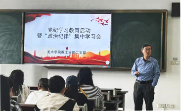 2024年4月18日至19日,美术学院党委启动党纪学习教育。党委下设的六个支部围绕“政治纪律”分别组织党员深入解读《中国共产党纪律处分条例》的总则内容,搞清楚党的纪律规矩是什么,弄明白能干什么、不能干什么,把遵规守纪刻印在心,内化为日用而不觉的言行准则,进一步强化纪律意识、加强自我约束、提高免疫能力,增强政治定力、纪律定力、道德定力、抵腐定力,做到对党忠诚、为党争光。