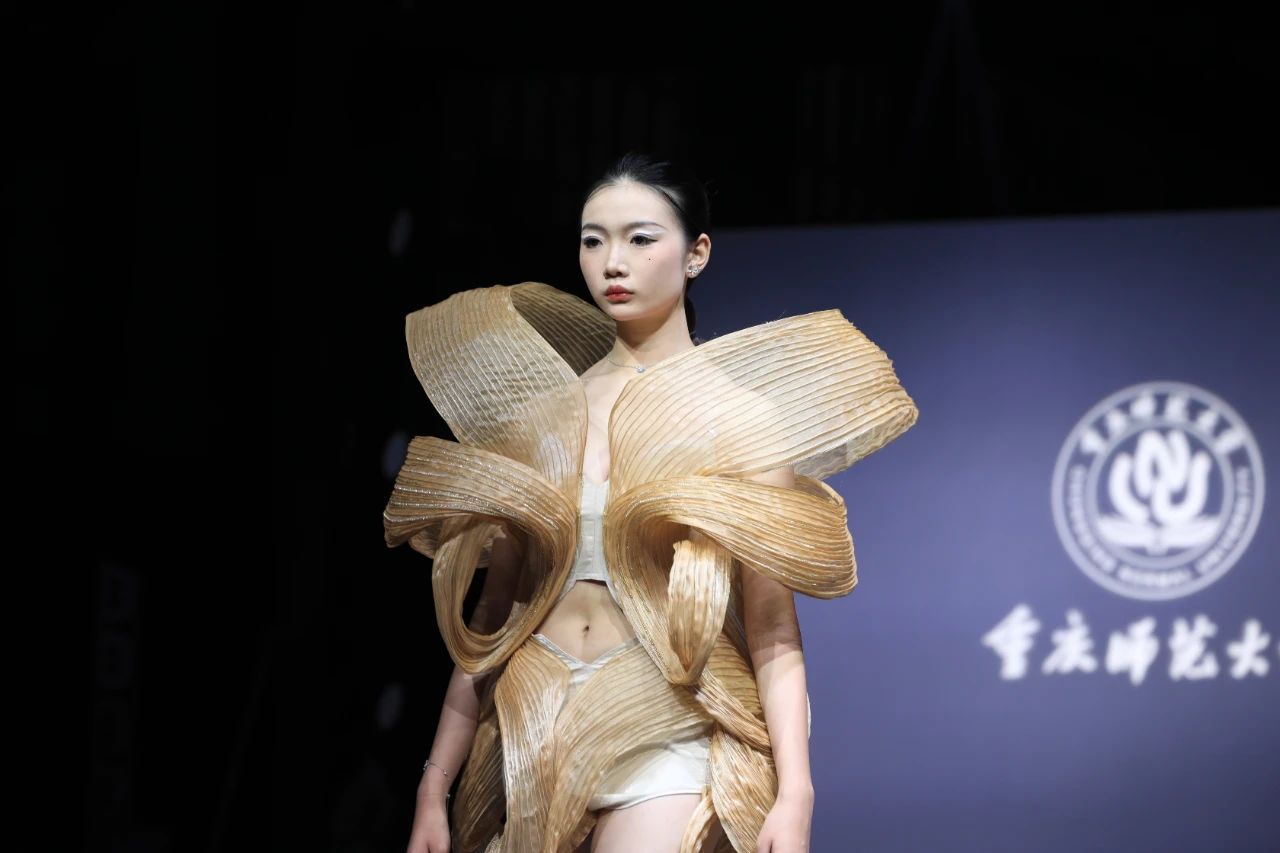 立足“新序”主题,结合垫江当地特色,毕业生们汲取服装设计的精髓,将手工工艺与现代设计巧妙融合,打破常规思维,积极探索现代时尚风尚的创新表达和全新秩序,展现出别具一格的新一代设计风貌。