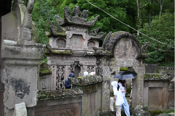 在鱼木寨内现存的多座清晚期至民国时期的大型地上墓葬建筑前,石永婷副教授为学员们详细讲解了这些墓葬建筑的特点。她指出,墓葬形式和建筑语言凝结了丰富的文化要素,通过这些要素可以深入研究造墓者与其家族的思想和情感。石教授强调,乡村的民俗、文明的彰显以及乡村教化和美育,传递了先辈们的文化理念和引导意图,与当下的风俗进行碰撞性思考是有意义的。她指出,传统文化中的美好品德得以流传,是因为它们在历史的淘洗中得以保留,研究不仅要关注形式,更要理解背后的精神和物象。