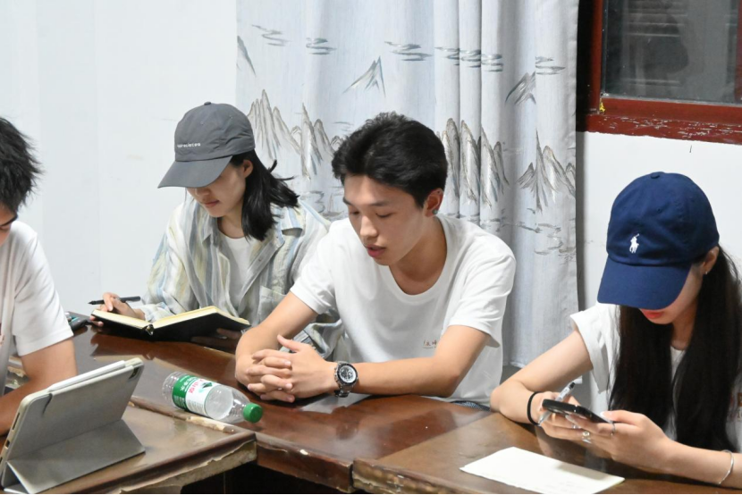 (晚上十点钟还在向当地文保人员提问的同学们)