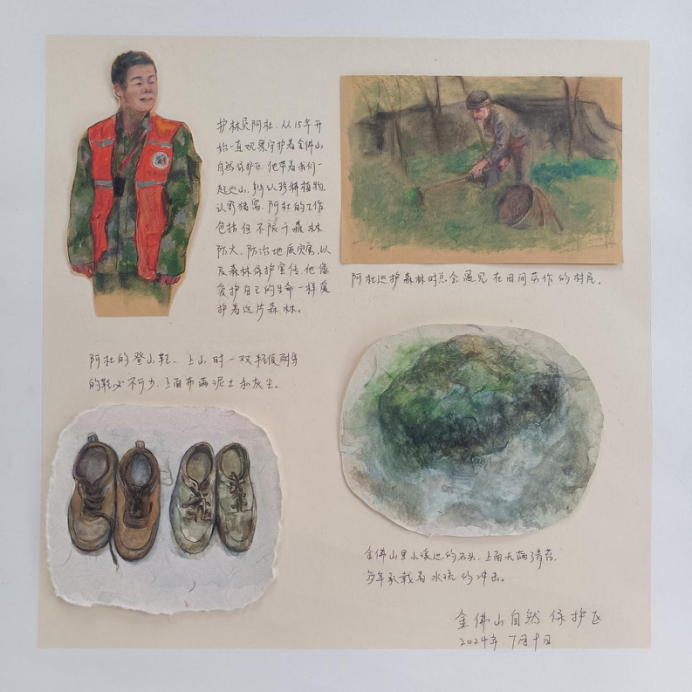 为了探索提高学生的专业素养与技能教学方式,我们在“世界护林员日”前组织了一次特别的见习活动。美术学院老师组织同学们前往重庆金佛山国家级自然保护区,进行了以护林员为主题写生创作的深入体验。
