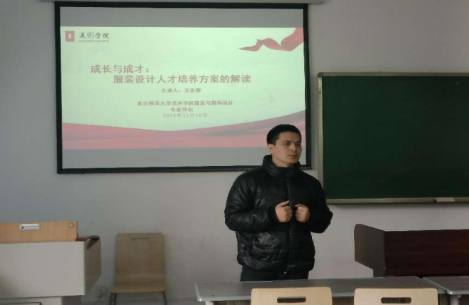 第一部分由服装与服饰设计系主任卫向虎老师主讲,他首先对服装与服饰设计专业《人才培养方案》展开了深入的解读。他从服装专业的办学定位和优势出发,详细阐述了本专业致力于培养复合型人才的目标。接着系统介绍了课程体系、核心课程、毕业要求等,明确了学生在毕业设计、实践能力和学术成果等方面应达到的标准,为同学们清晰地勾勒出专业学习的蓝图。