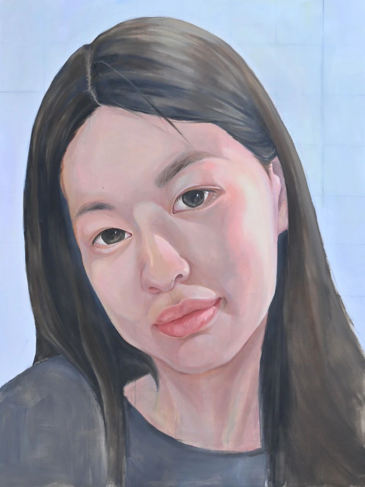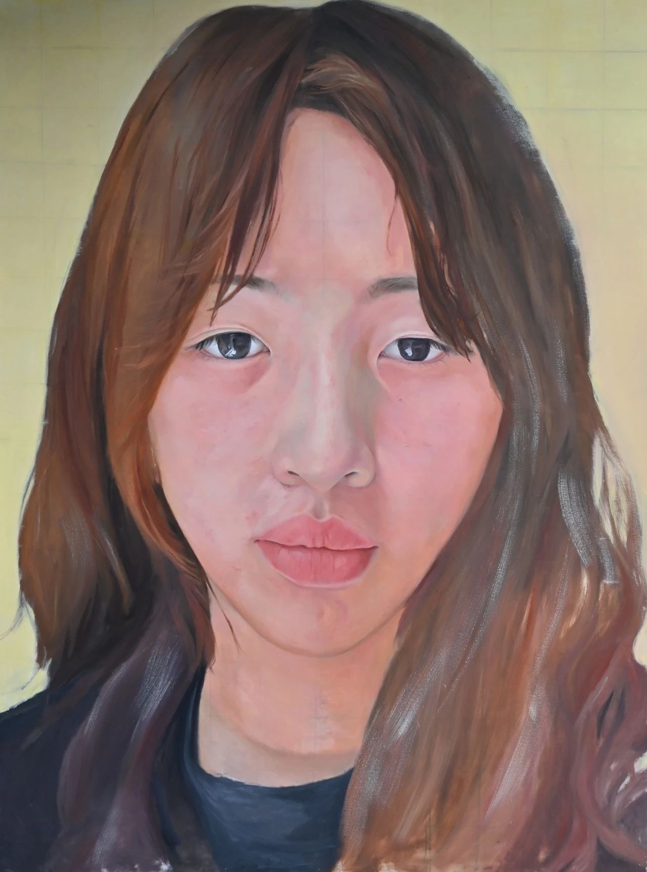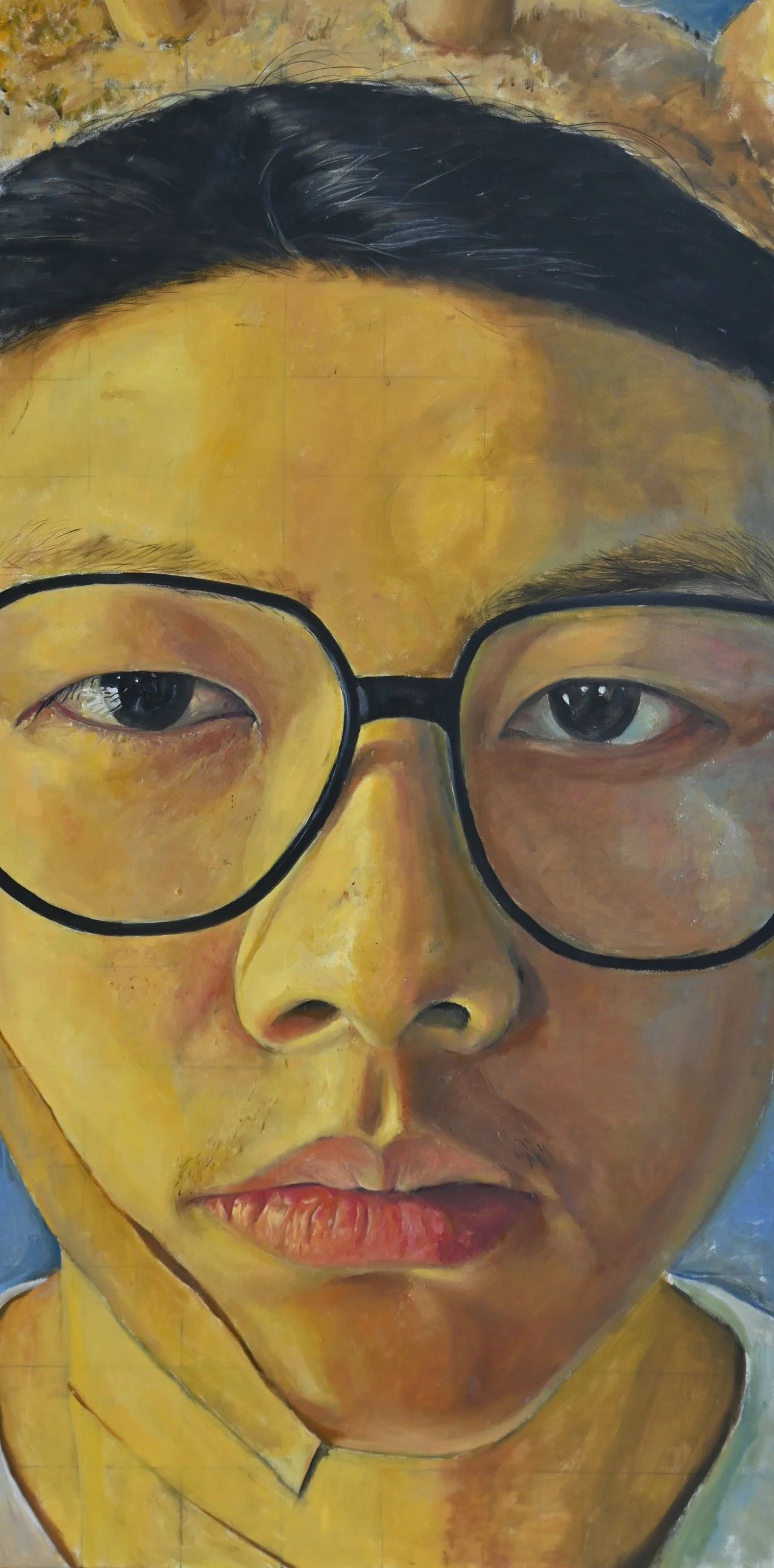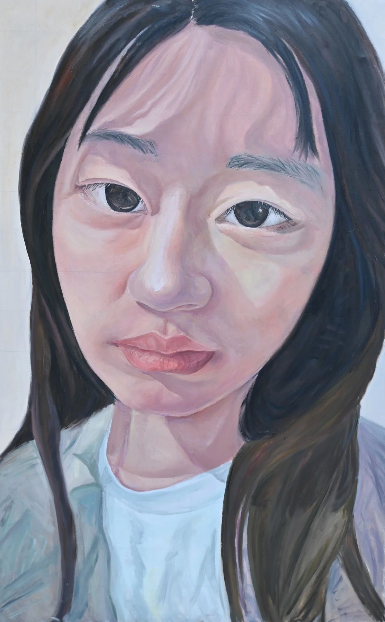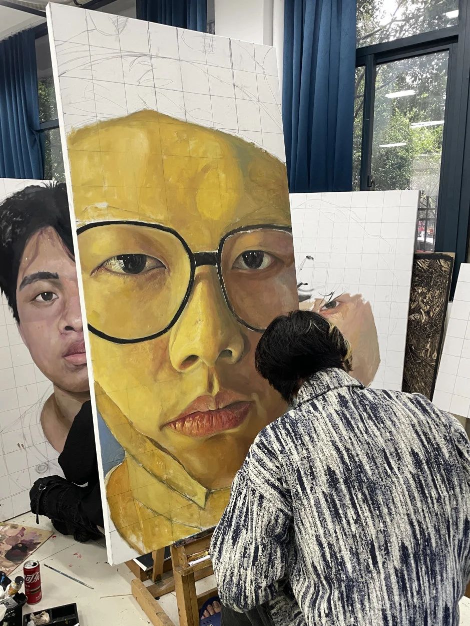 “二分之一”这个名字,是在本次展览作品的创作者——绘画系本科2021级油画班学生中征集到的。世界的二分之一是现实,另外的二分之一在“镜像”中,二者共同构成完整的我们和世界。“镜像”的物质载体绝不仅仅是映照形象的镜子,摄影摄像、绘画等传统媒体、手机、新媒体、按照“人设”指令生成的AI形象等等,都构成了当代的“镜像”载体。按照拉康(Jacques Lacan)的“镜像理论”,本次展览作品的作者,本科2021级油画班的同学们,正是通过超写实自画像的创作与绘制,重演了一次“自我”从“前镜像阶段”向“镜像阶段”的转变:“镜像”一经确立,也就意味着“自我”的成型,此时的“自我”=现实中的“自我”+镜像中的“自我”,当然也濳隐着“他者”眼中的“自我”,这是融合作者现实与想象的完整形塑过程,所以说,这是一次“镜像体验”,也是一次“自我生成”的实验。以此为起点,同学们可以继续去探索在自我建构的过程中,自我与他者的冲突、与他者的交叉、与他者的融合……这是一个值得在艺术中继续探讨的方向。