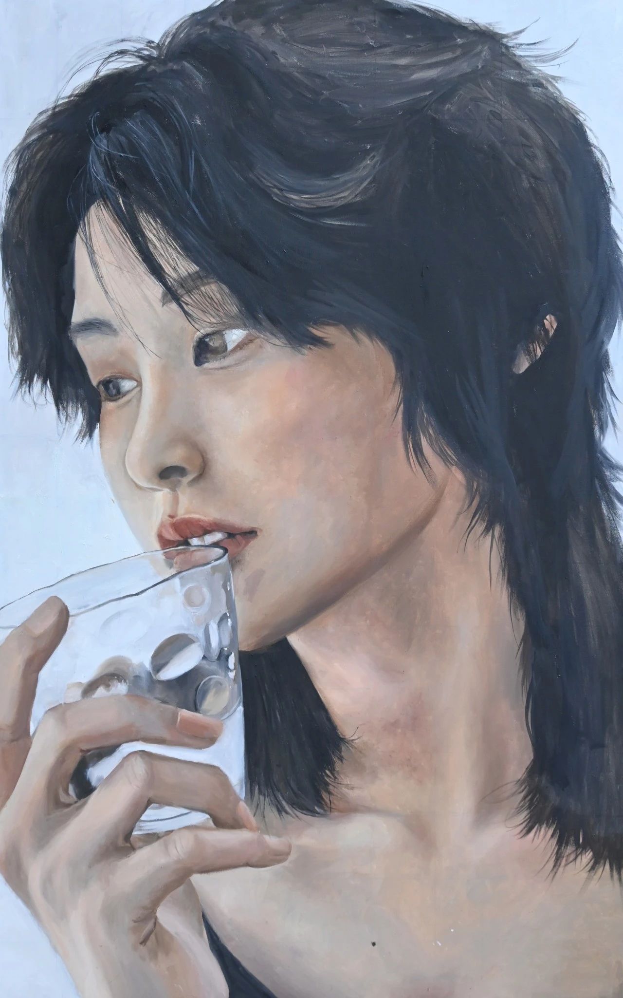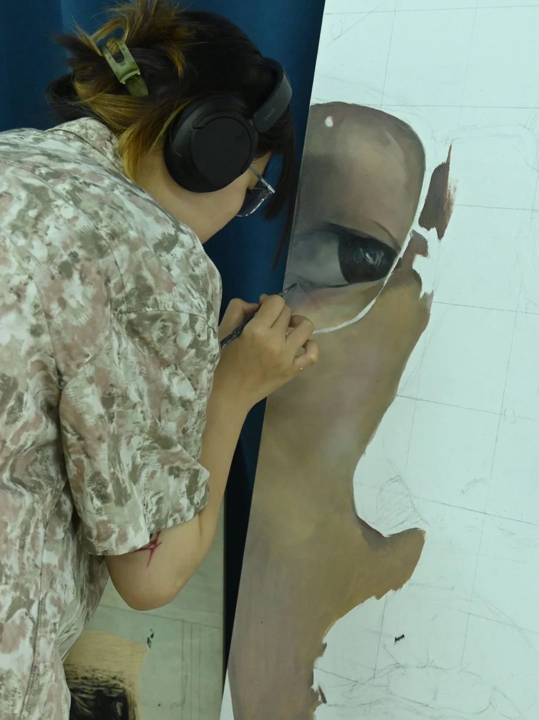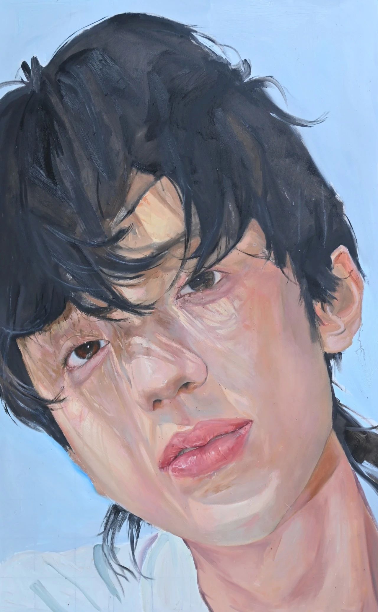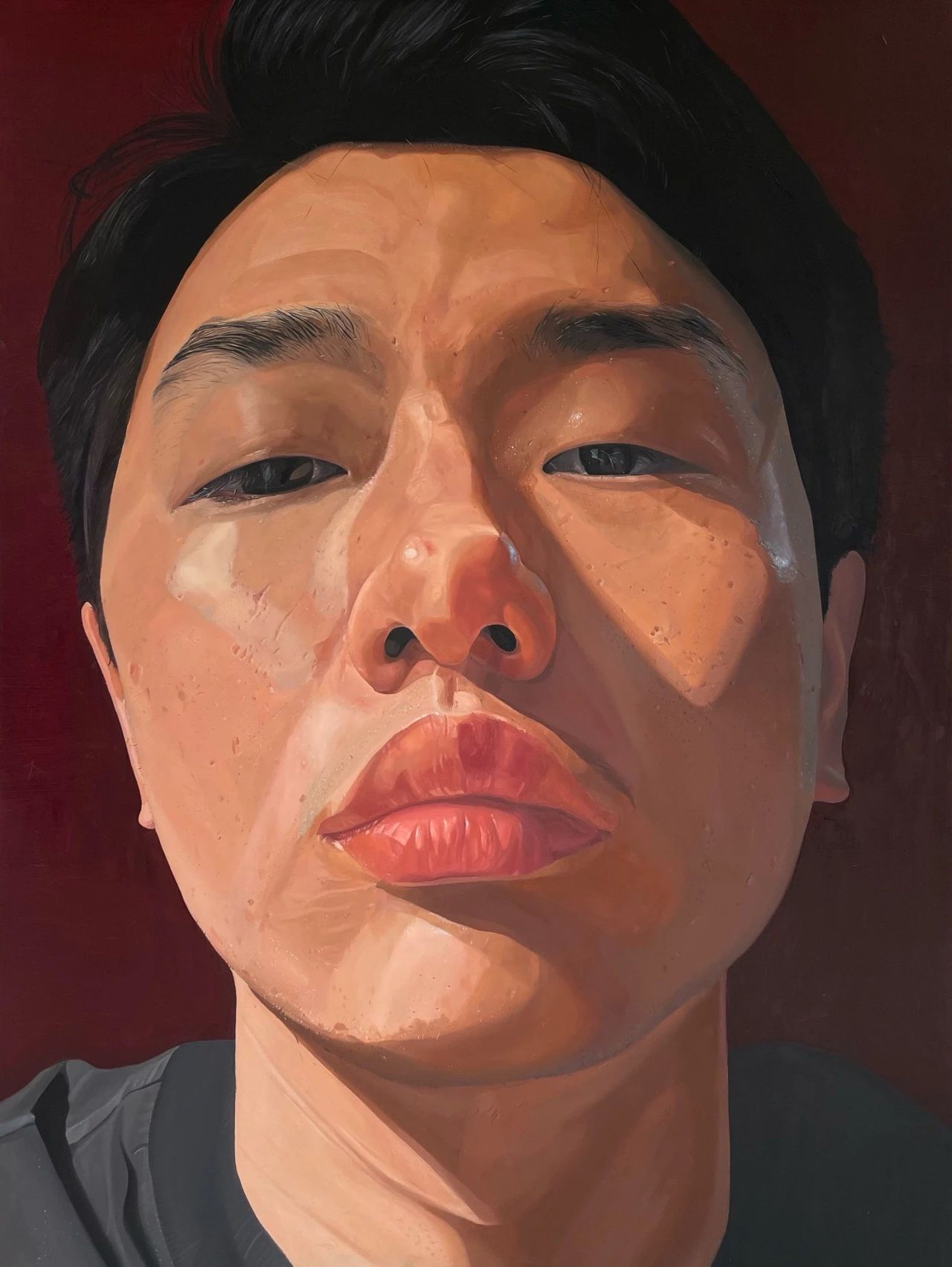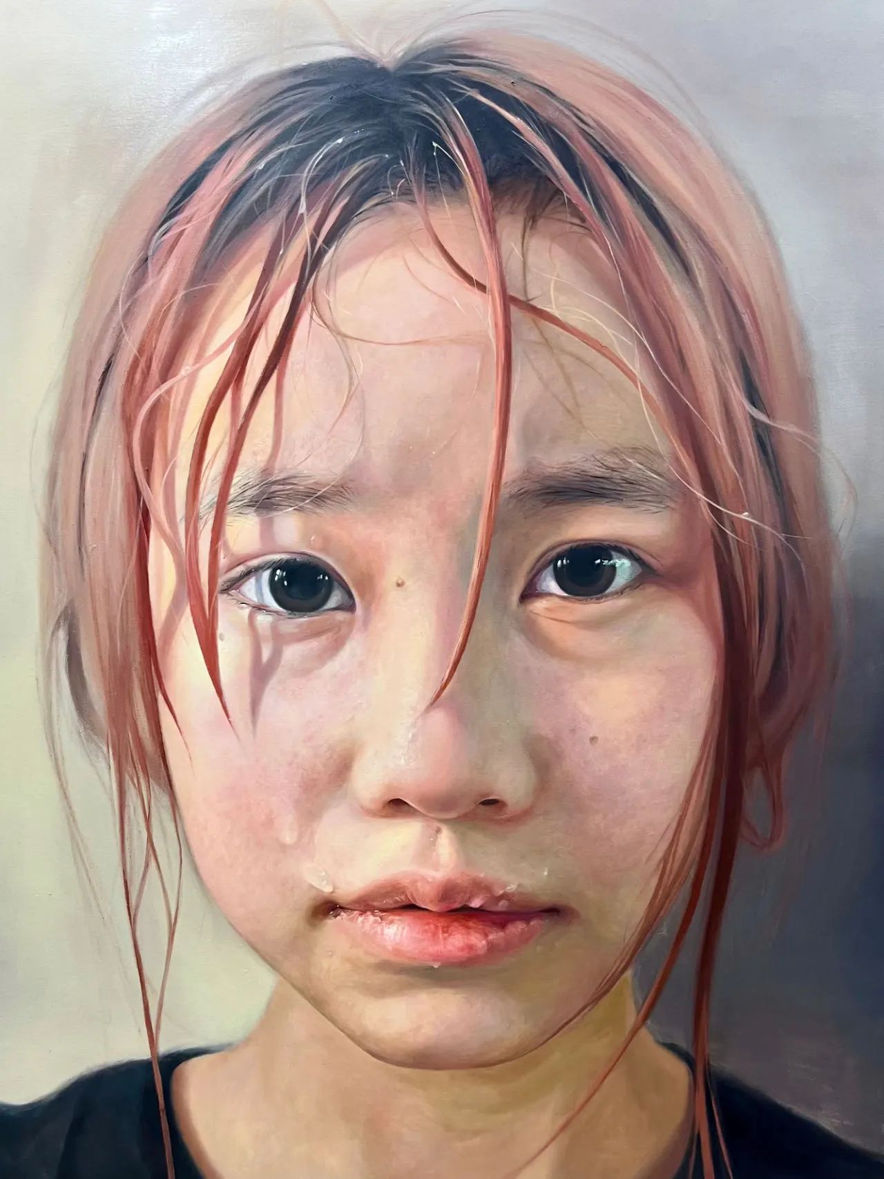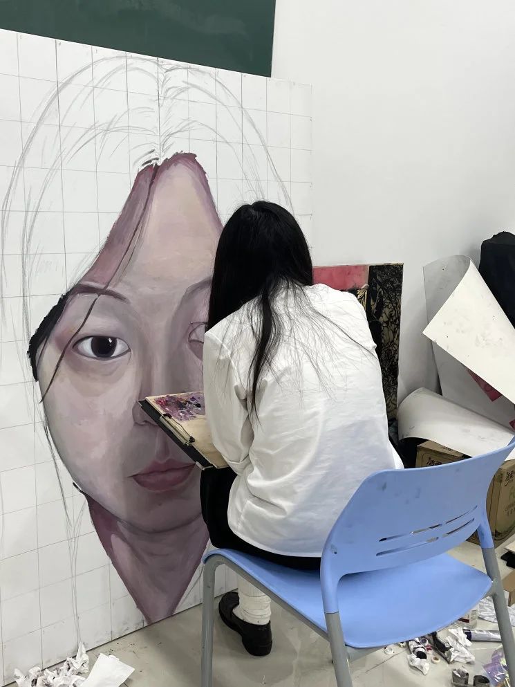 “二分之一”这个名字,是在本次展览作品的创作者——绘画系本科2021级油画班学生中征集到的。世界的二分之一是现实,另外的二分之一在“镜像”中,二者共同构成完整的我们和世界。“镜像”的物质载体绝不仅仅是映照形象的镜子,摄影摄像、绘画等传统媒体、手机、新媒体、按照“人设”指令生成的AI形象等等,都构成了当代的“镜像”载体。按照拉康(Jacques Lacan)的“镜像理论”,本次展览作品的作者,本科2021级油画班的同学们,正是通过超写实自画像的创作与绘制,重演了一次“自我”从“前镜像阶段”向“镜像阶段”的转变:“镜像”一经确立,也就意味着“自我”的成型,此时的“自我”=现实中的“自我”+镜像中的“自我”,当然也濳隐着“他者”眼中的“自我”,这是融合作者现实与想象的完整形塑过程,所以说,这是一次“镜像体验”,也是一次“自我生成”的实验。以此为起点,同学们可以继续去探索在自我建构的过程中,自我与他者的冲突、与他者的交叉、与他者的融合……这是一个值得在艺术中继续探讨的方向。