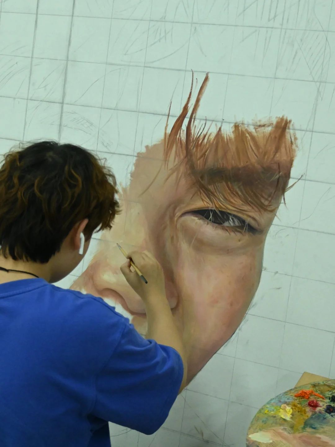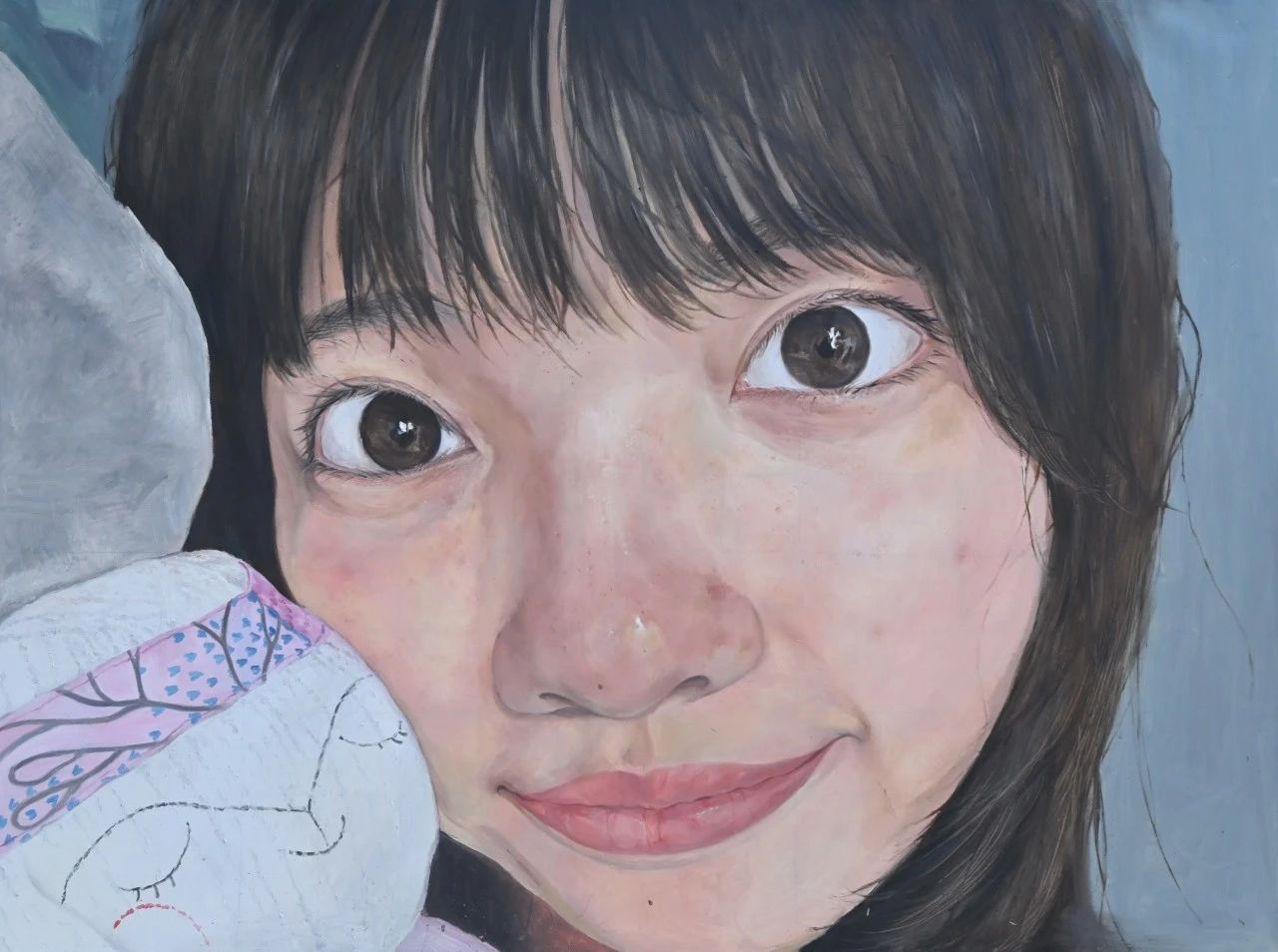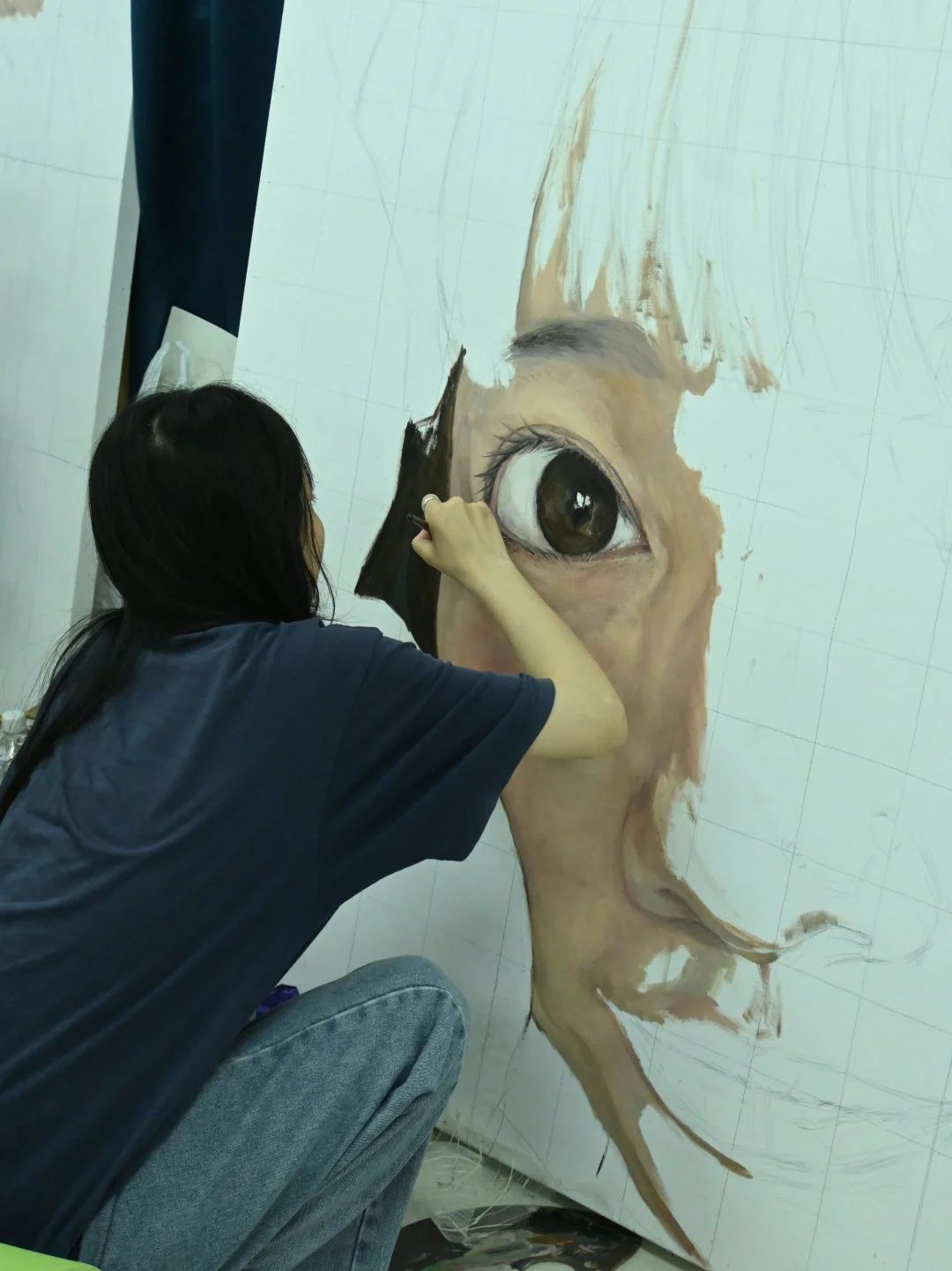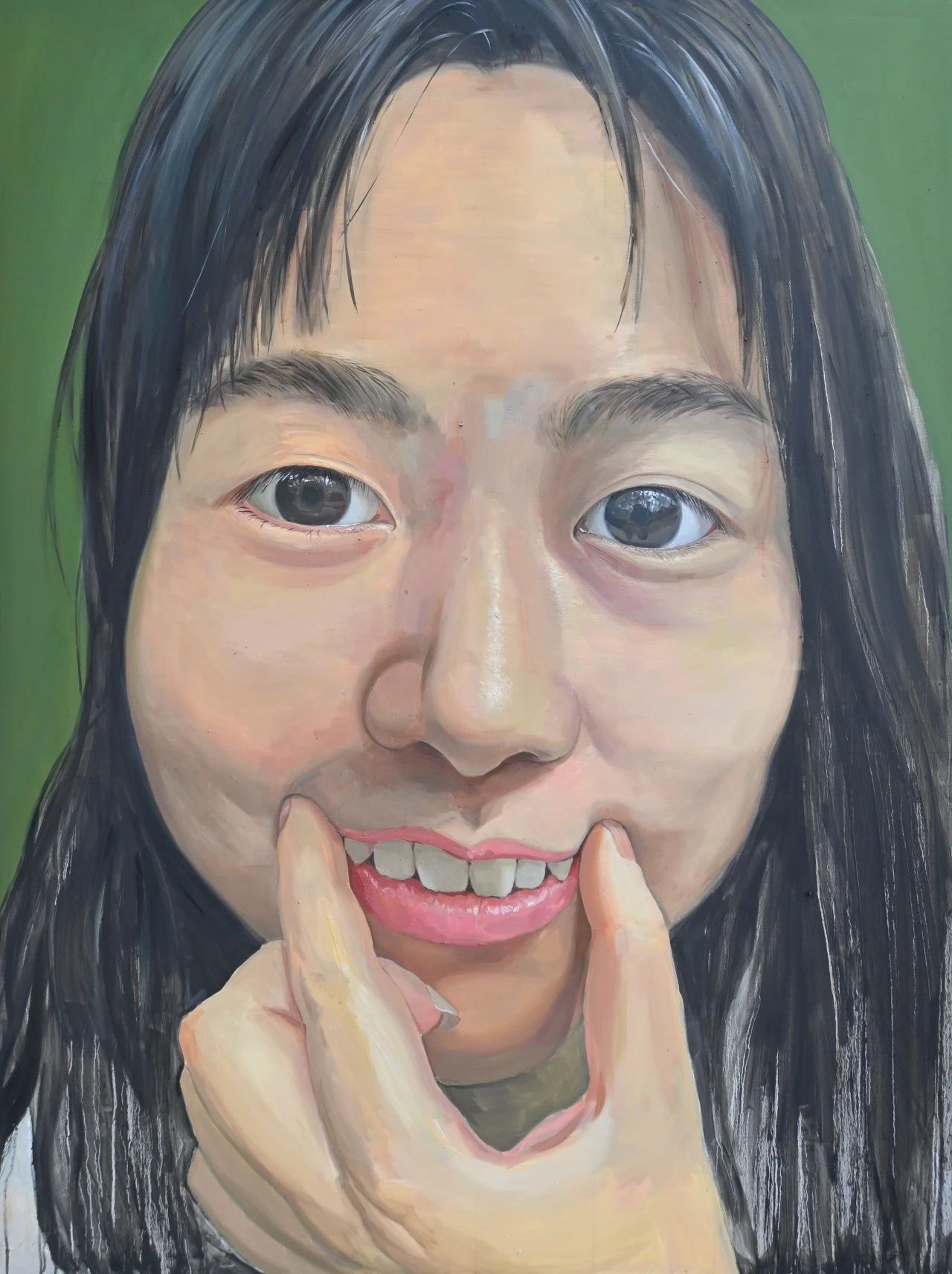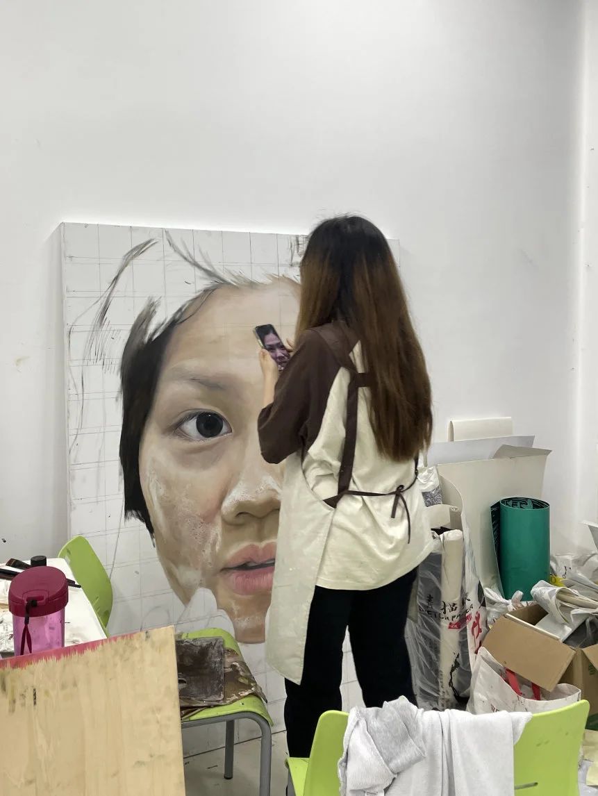 “二分之一”这个名字,是在本次展览作品的创作者——绘画系本科2021级油画班学生中征集到的。世界的二分之一是现实,另外的二分之一在“镜像”中,二者共同构成完整的我们和世界。“镜像”的物质载体绝不仅仅是映照形象的镜子,摄影摄像、绘画等传统媒体、手机、新媒体、按照“人设”指令生成的AI形象等等,都构成了当代的“镜像”载体。按照拉康(Jacques Lacan)的“镜像理论”,本次展览作品的作者,本科2021级油画班的同学们,正是通过超写实自画像的创作与绘制,重演了一次“自我”从“前镜像阶段”向“镜像阶段”的转变:“镜像”一经确立,也就意味着“自我”的成型,此时的“自我”=现实中的“自我”+镜像中的“自我”,当然也濳隐着“他者”眼中的“自我”,这是融合作者现实与想象的完整形塑过程,所以说,这是一次“镜像体验”,也是一次“自我生成”的实验。以此为起点,同学们可以继续去探索在自我建构的过程中,自我与他者的冲突、与他者的交叉、与他者的融合……这是一个值得在艺术中继续探讨的方向。