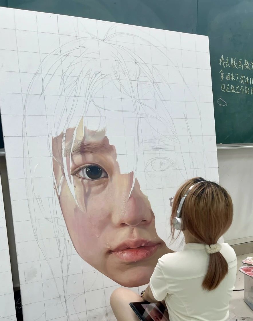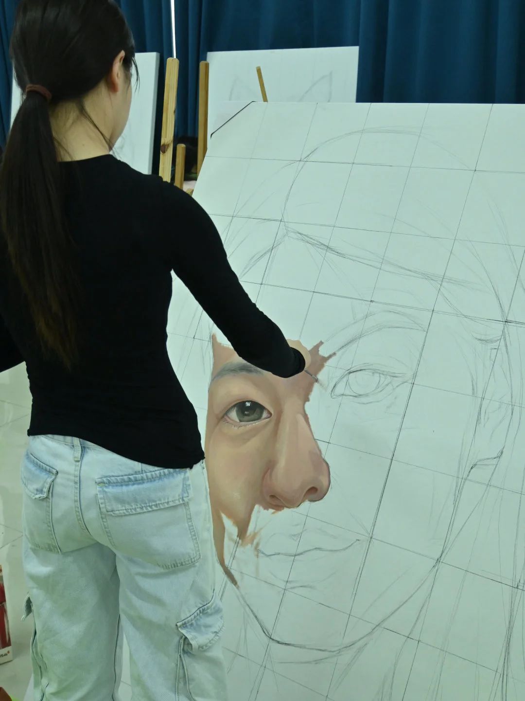 超写实绘画略去世界的浮光掠影,“一超直入”地进入看似熟悉实则陌生的“本相”,用无数细节加强了图像揭示世界真相的可信度和震撼力。从这个角度来说,课程指导教师娄国强老师在教学中选择以自画像为核心内容,非常贴切地回应了课程目标中“超级写实绘画”语言训练的任务要求,因为超级写实绝不仅是技法的,更是精神的。
