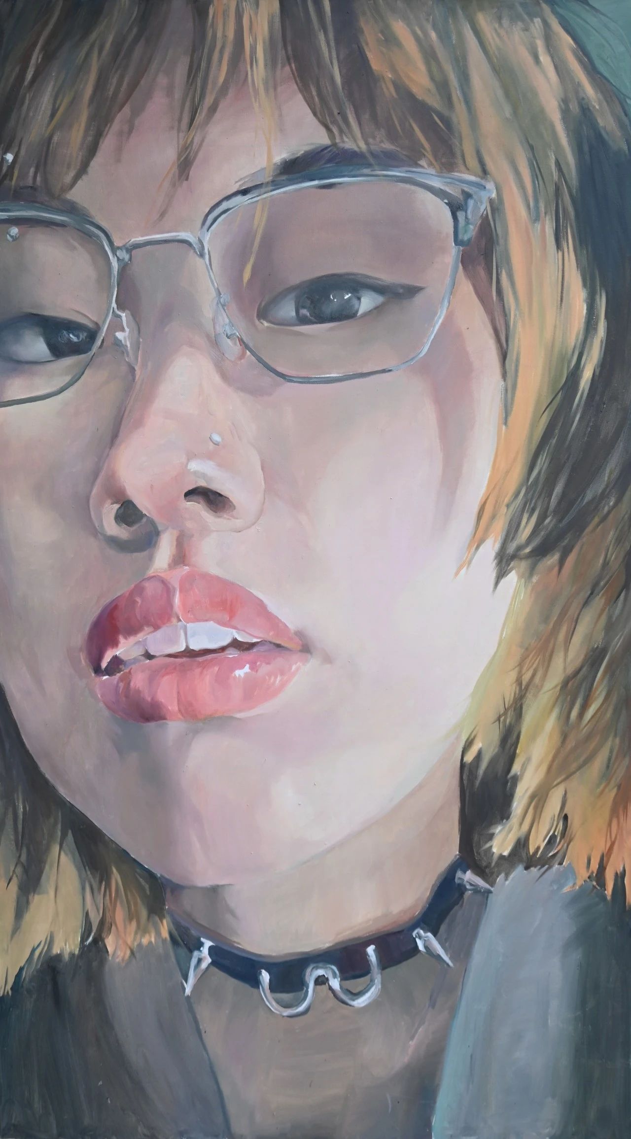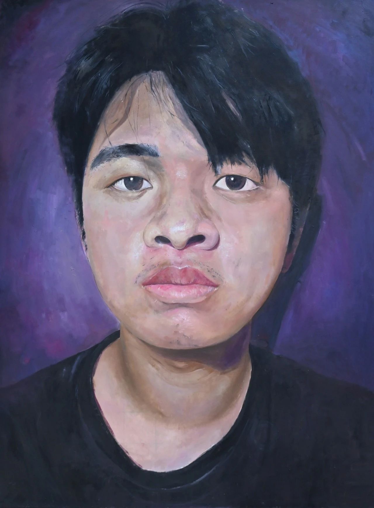 自画像,不仅是对外貌的描绘,更是重新认识自己的过程。它是人与自我关系的映射,是照见内心的独白,可以将内心的混乱调整为有序的状态,从而达到疗愈的效果。在本次创作中,我能够发现自己的优点,接纳自己的缺点。尽管画面仍有不足,但这依然能够表达那一刻我的心情,跃然于画面的是“真实”的自己,学会接纳自己,也是一门重要的人生课题。