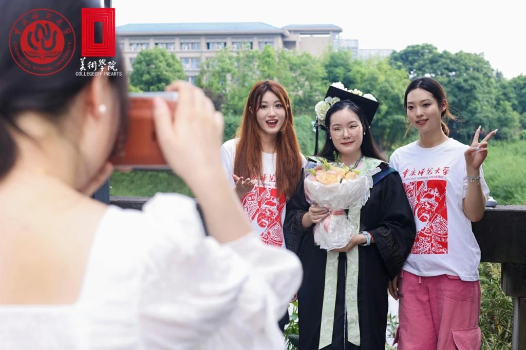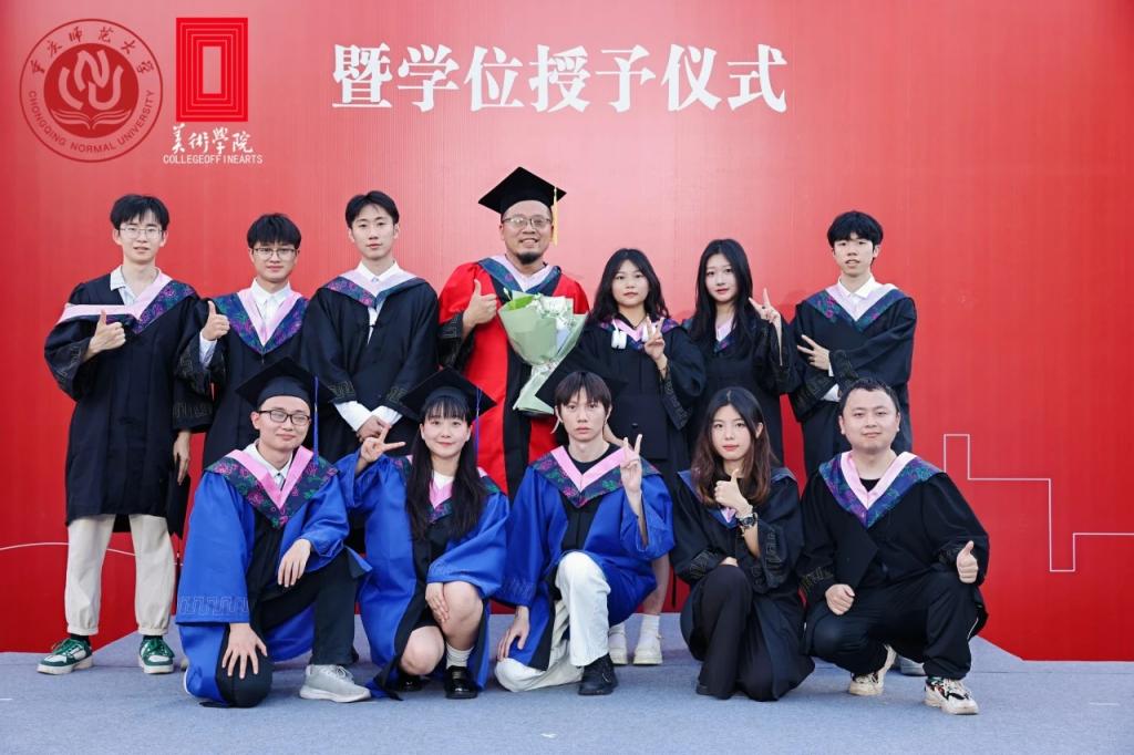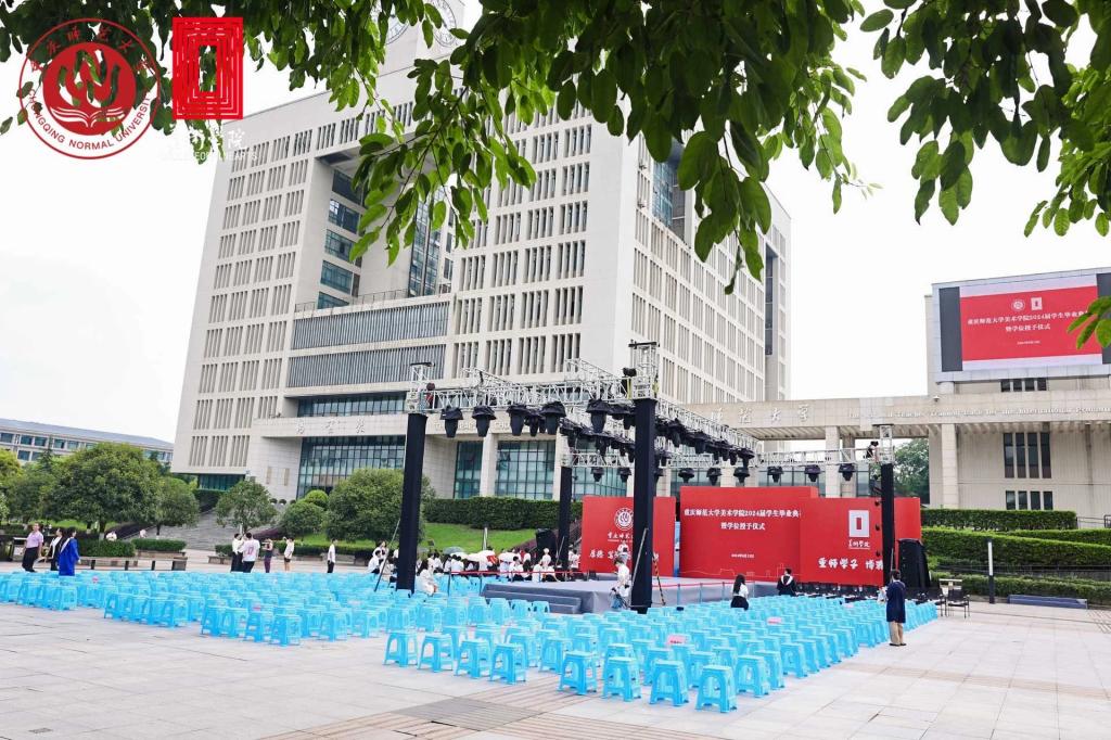 毕业典礼开始前,毕业生李思奇和朱重麟以及低年级学生代表带来快闪歌曲《凤凰花开的路口》《后会无期》《再见》,一首首歌曲温馨感人,让同学们尽享校园美好时光;将“重师情结”烙印在每一位毕业生的心里,祝2024届全体毕业生启程远航!