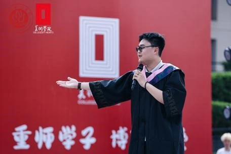 代鑫同学首先对母校致以最崇高的敬意和感恩,向老师及家长表示最衷心的感谢!分享了对重师、老师、青春的三封致谢信。表示美院学子将一直做追梦人,永葆初心,砥砺前行,不负青春、不负韶华、不负时代!