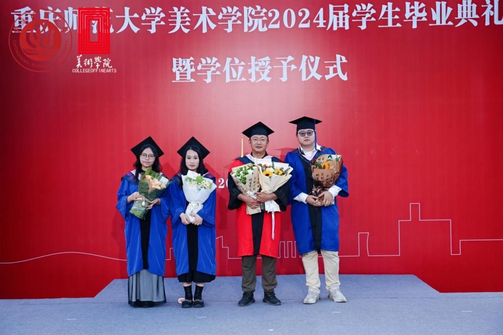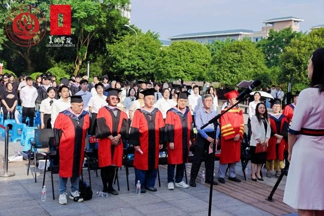 2024年6月13日下午17点,美术学院2024届学生毕业典礼暨学位授予仪式在图书馆广场隆重举行。学院党政班子、学位评定委员会全体委员,系部主任,教师代表,全体辅导员、班主任,毕业生代表、低年级学生代表参加了典礼。毕业典礼由学院党委副书记兼纪委书记丁睿主持。