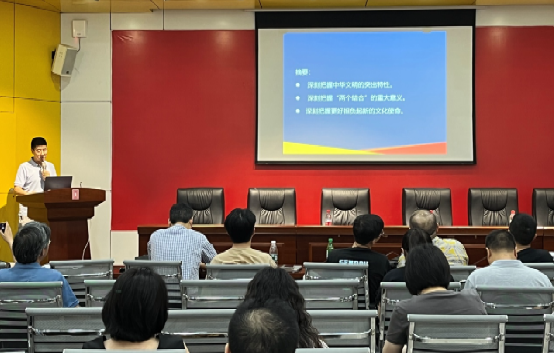罗晓欢教授分享了习近平总书记在文化传承发展座谈会上的讲话,讲话中指出,我们的社会主义之所以不一样,能够生机勃勃充满活力,关键就在于中国特色,中国特色的关键就在于两个结合,即马克思主义基本原理同中国具体实际相结合、同中华优秀传统文化相结合。我们的根基和血脉在于文化,文化自信是更基本、更深层、更持久的力量。党的十八大以来,习近平总书记高度重视传承和弘扬中华优秀传统文化,鲜明提出创造性转化、创新性发展的方针。