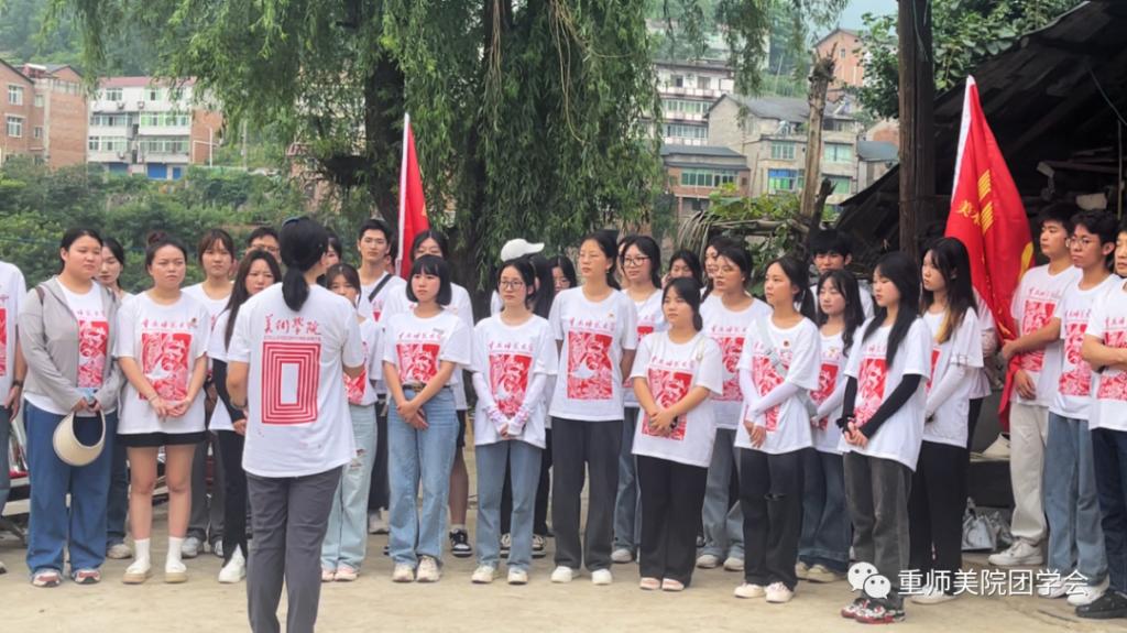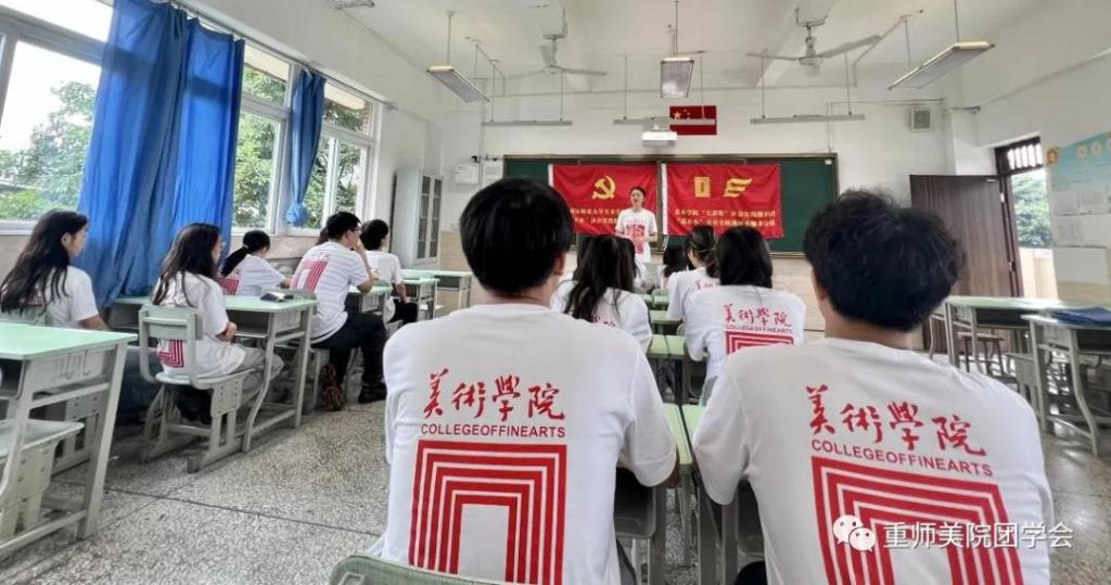 美术学院于暑期“三下乡”社会实践“党旗飘扬”临时党支部是学院思政教育的重要尝试,也是学院党建带团建的重要举措,把“党性之美、品德之美、创意之美、奉献之美”纳入各类主题活动中,融入课程思政、艺术思政,强化思想引领,让红色基因成为激励学生的内生动力,让同学们在创造美的过程中坚定理想信念,培养鸿鹄之志,坚定不移地听党话,跟党走。