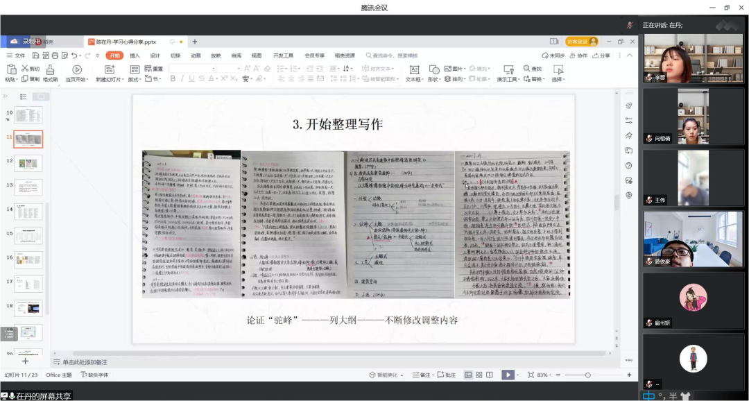 另外,陈在丹同学向大家展示了她研究生三年所写的六本笔记本,每一个重要知识点她都会贴上标签方便查阅。她告诉大家,研一研二的时候阅读要广,拓展视野找到兴趣点,还要多和老师、同学交流,多听讲座,积极参加学术论坛,与别人交流的时会有新发现。