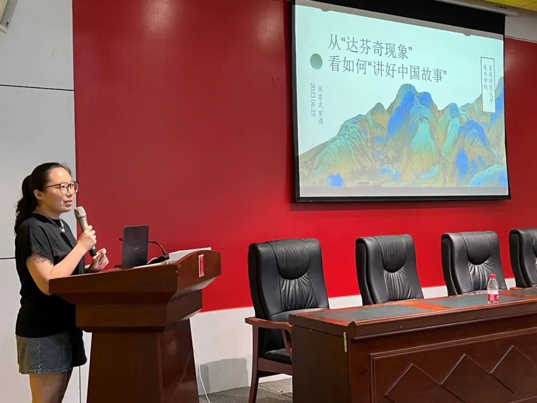 2023年6月29日下午,美术学院党委委员、教工一支部书记倪纯如副教授以“从‘达芬奇现象’看如何‘讲好中国故事’”为题,在南门花马讲堂开展“共享式”党课,美术学院全体党员出席,非党员教职工列席。
