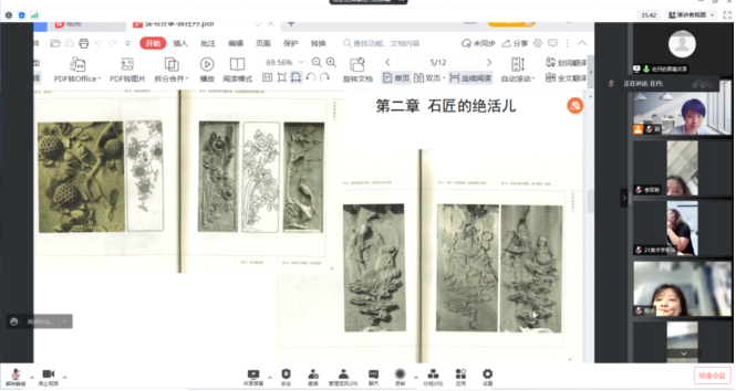 首先,陈在丹同学讲述《庵上坊—口述、文字和图像》是一本阅读起来很轻松的专业学术书籍,并摘取了其中几个章节与大家分享。比如第二章石匠的绝活儿,讲述了关于石匠如何得到修坊资格的传说,并对石坊的建筑形制、雕刻装饰进行图像学研究。这一章节,也是她后面反复重点阅读的部分,作者在对建筑形制和雕刻进行的图像学研究对于其论文的研究与写作提供了很大的借鉴作用。然后,在丹同学对这本书中探讨的有关于“史料”的思考,美术史叙述方式的思考,物本身的思考等问题与大家进行了深入的交流与探讨。