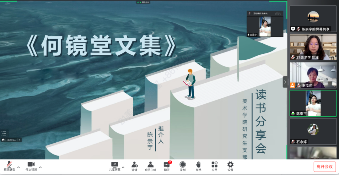 2022年9月5日中午,美术学院研究生支部在线开展了第23期好书推介活动。本次活动由研究生支部党员陈崇宇(2020级艺术设计专业)向大家推荐华中科技大学出版社于2012年出版的《何镜堂文集》,教工一支部党员石永婷副教授进行点评,研究生支部书记谢汝莉老师主持活动。