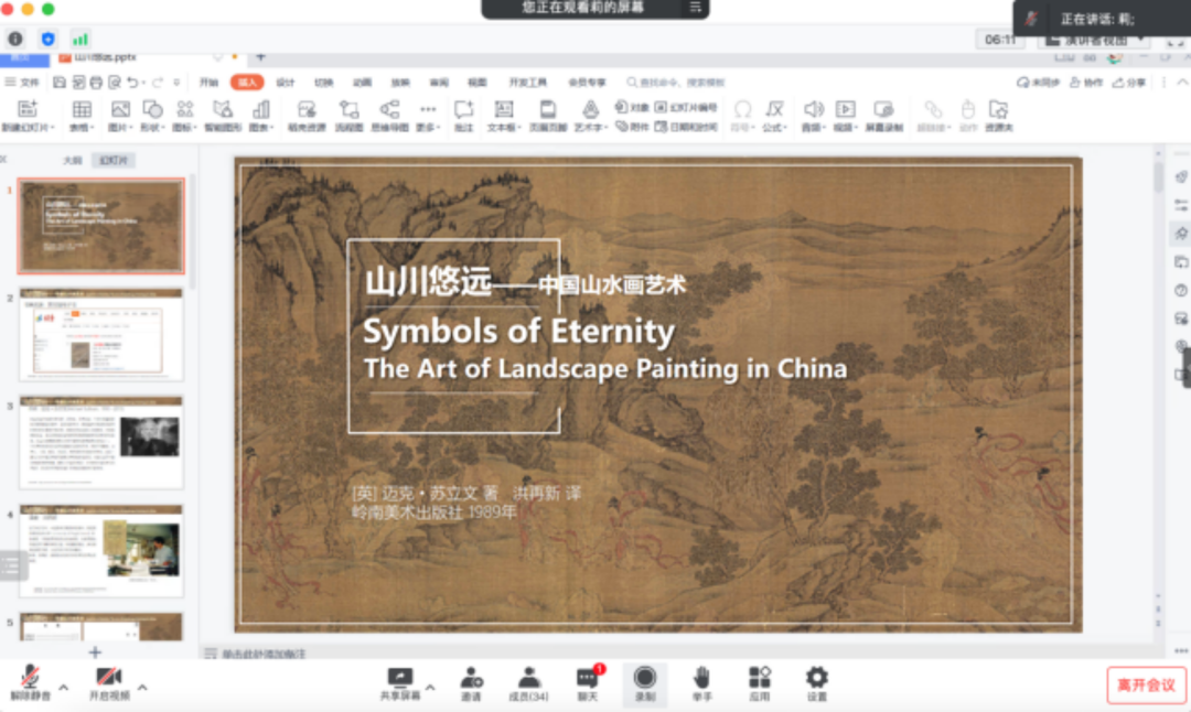 20221128日下午美术学院研究生支部在线开展第25期好书推介活动本次活动由研究生支部书记谢汝莉老师教职工一支部倪纯如副教授和研究生班主任王延晖博士共同为大家分享山川悠远——中国山水画艺术