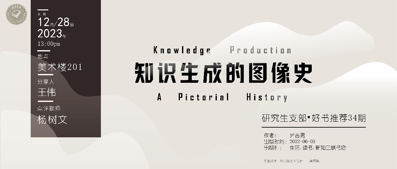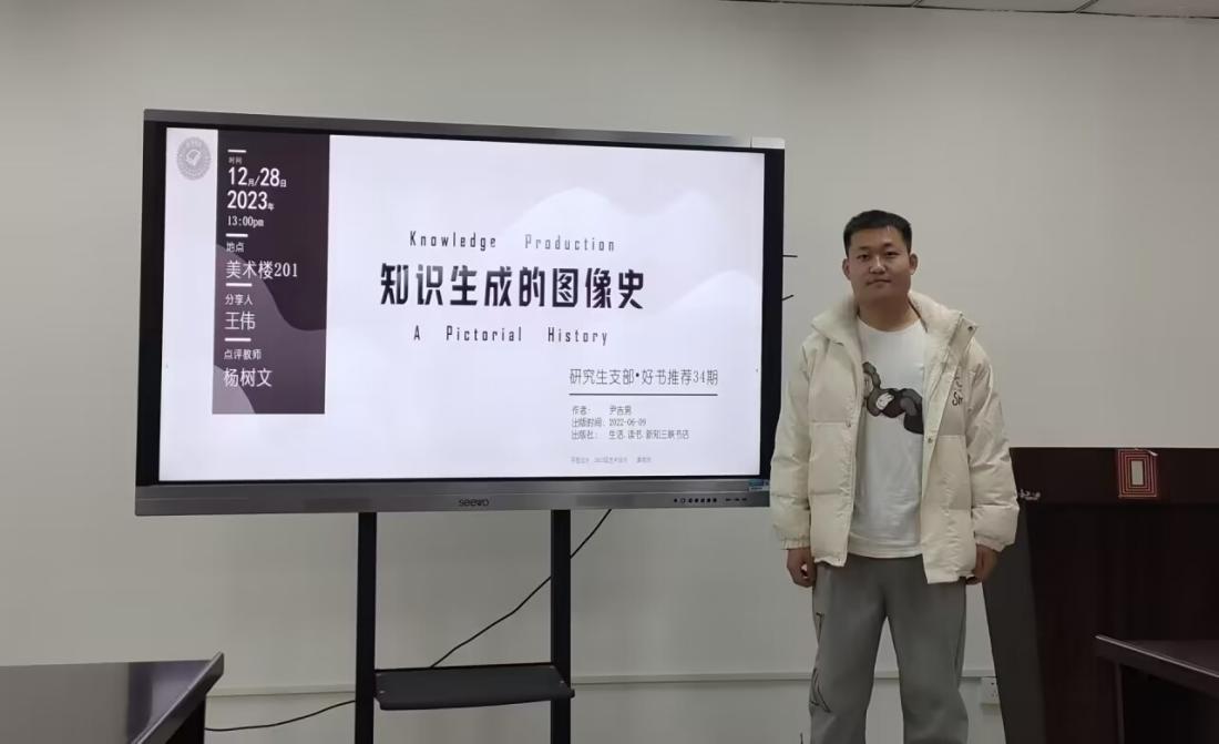 2023年12月28日中午,PA视讯集团研究生支部在美术学院201室开展了第34期好书推荐活动。本次活动由2021级美术学研究生王伟同学为大家推荐尹吉男教授的《知识生成的图像史》一书,研究生支部党员、本科学生二支部党员参会,院党委委员、院长助理杨树文副教授进行点评,研究生支部书记谢汝莉老师主持活动。