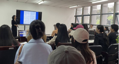 ▲美术学院研究生支部书记谢汝莉带领研究生党员共同学习《条例》