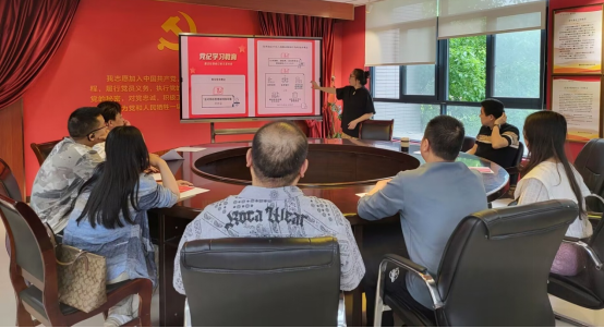 ▲5月7日,教工一支部党员在党员之家学习廉洁纪律和群众纪律,并观看警示教育片。