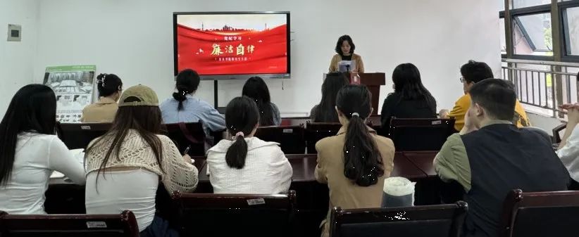▲5月6日,研究生支部党员在美术楼201室学习廉洁纪律