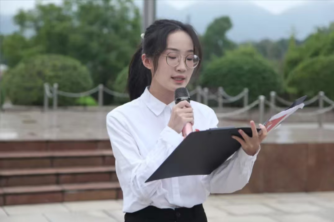 2022级绘画2班陈竹颖作为“七彩绘”社会实践服务团代表发言,她分享了暑期三下乡社会实践中弘扬和传承红色革命精神的感悟,在实践中激励自我砥砺前行。2022级美术学2班曹迎芯作为“蒲公英”美育浸润课堂实践代表发言,分享了在美育课堂中的实践成果,作为新时代的青年学子,致力于传承非遗文化,弘扬中华优秀传统文化。