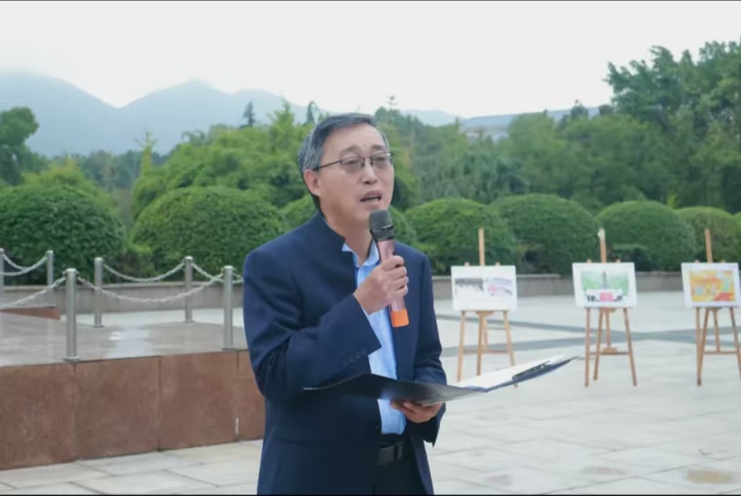 在激昂的中华人民共和国国歌声中,五星红旗冉冉升起,升旗仪式结束后,美术学院党委书记刘清泉老师以《家国同构 国家唯人》为题作了国旗下的讲话。刘清泉书记语重心长的勉励全体师生,首先,美术学院全体师生要认真学习王国胤校长在建校70周年发展大会上的讲话,在学校发展的新征程中挺膺担当。第二,美术学院全体师生要以本次举办家风家训主题视觉文化艺术展为契机,培育浓厚的家国情怀,将个人发展融入到学校发展和中国式现代化建设中去。第三,同学们要积极参加各类专业活动和社会实践活动,向2019级许祖荣同学学习,到祖国和人民最需要的地方去贡献青春力量,努力成为堪当民族复兴重任的时代新人。随后,刘书记现场连线服务于新疆铁门关市的许祖荣校友,通过视频他表达了对母校70周年的诚挚祝愿,对学院老师辛勤付出的感激,对学弟学妹们的期盼与祝福,勉励学弟学妹们努力学习,树立扎根基层、扎根边疆、服务人民的伟大理想。
