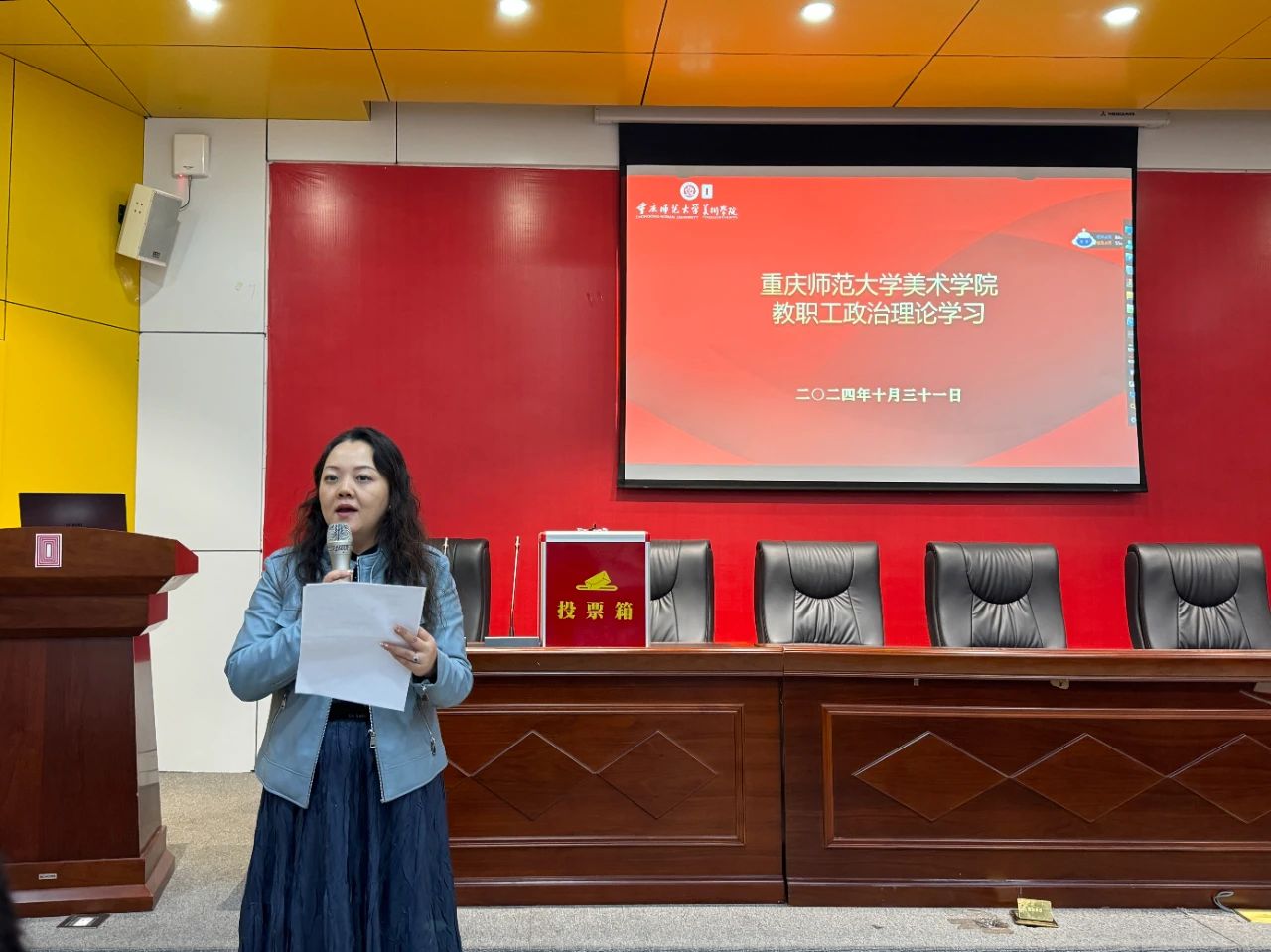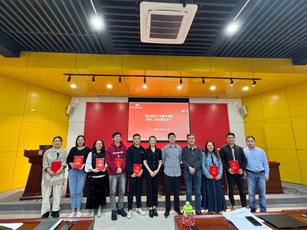 2024年10月31日下午,本年度第九次“互喻式”政治理论学习在美术学院花马讲堂举行,全体教职工参会。