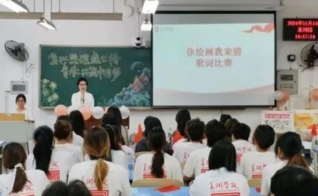 2024年11月14日,美术学院2023级服装与服饰设计二支部在弘德楼13101教室隆重举办了一场以“复兴照耀盛世情,青春共筑中国梦”为主题的团日活动,旨在庆祝新中国成立75周年,教育引导广大团员坚定不移听党话、跟党走,同时发挥基层共青团组织作用,展现团员青年的良好精神风貌。