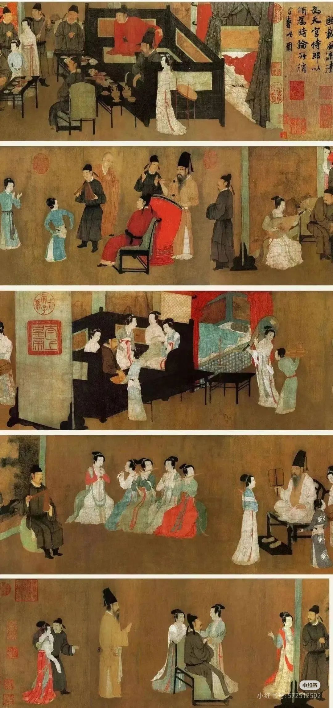 在本次分享活动中,朱世新选取了《韩熙载夜宴图》进行了详细解读。这幅画分为五个部分:听乐、观舞、休息、清欢、送别,每个部分都有隐藏的故事。朱世新特别强调,该书采用通俗易懂、简洁明了的书写方式,为艺术的普及做出了贡献。