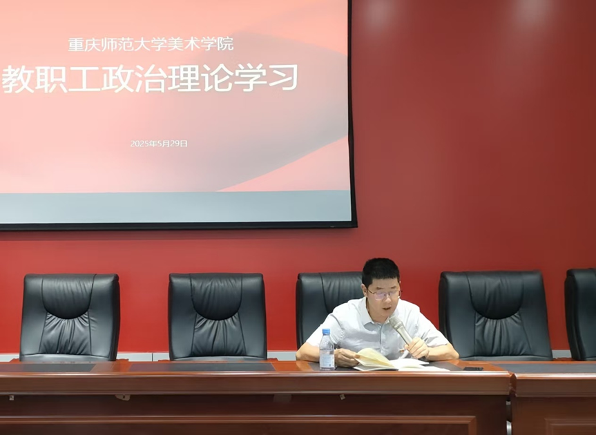 5月29日下午,美术学院全体教职工在花马讲堂进行“互喻式”教职工政治理论学习,学习会由院党委书记刘清泉主持。