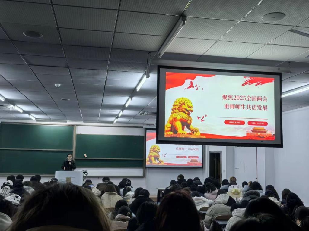 美术学院辅导员团队高度重视两会精神的学习与传达。3 月 10 日,辅导员们组织各班级开展了“学习两会精神,争做时代新人”主题班会。辅导员们通过生动的讲解、丰富的案例和互动讨论,引导学生深刻领会两会精神的核心要义,特别是关于教育、文化与青年发展的重要内容。学生们积极参与讨论,纷纷表示要将两会精神融入到日常学习和生活中,努力提升自身素养,为国家发展贡献力量。此次班会不仅加深了学生对两会精神的理解,也为学生的成长指明了方向。