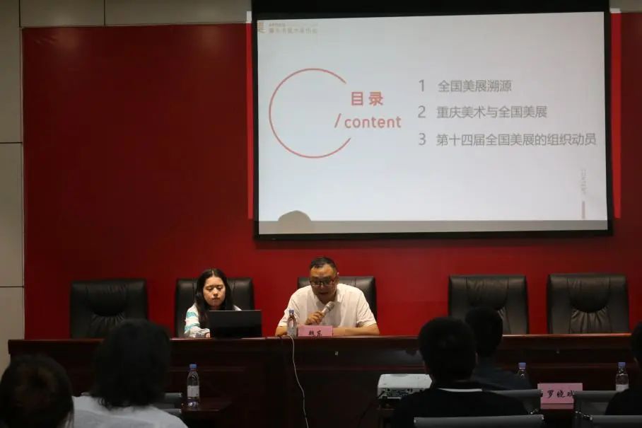 ※ 5月12日下午,PA视讯集团迎接全国美展创作启动仪式在花马大讲堂举行。活动旨在通过主题性作品创作培育,提高创作质量,提升我院美术作品在全国美展和重庆市美展中的入选率、获奖率。四川大学艺术学院学术院长、艺术研究院院长、四川美术学院艺术人文学院院长、教育部艺术教育委员会委员黄宗贤教授,中国美协理事、重庆市美协副主席、秘书长、中国美协重庆创作中心主任魏东应邀做主题报告。美术学院党委书记刘清泉、主持工作副院长罗晓欢、副院长张为民,设计实践与美术创作类研究生导师及相关专业教师、研究生代表莅会。活动由院长助理杨树文副教授主持。