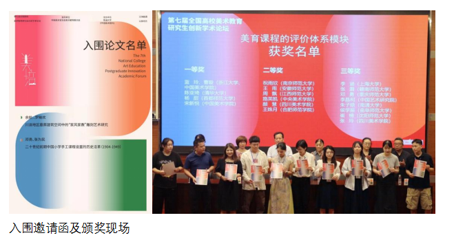 2023年9月18日,我院2021级艺术设计专业研究生余航、2022级设计学专业研究生邓勇同学应邀参加“第七届全国高校美术教育专业研究生创新学术论坛”,并作学术发言。两位同学提交的论文《川渝地区墓葬建筑空间中的“家风家教”雕刻艺术研究》《二十世纪前期中国小学手工课程设置的历史沿革》分别获得一等奖、三等奖。