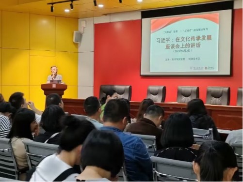 ◎2023年9月28日下午,美术学院党委在南门花马讲堂集中开展“共享式”党课教育,由学院党委刘清泉书记领学习近平总书记《在文化传承发展座谈会上的讲话》。美术学院全体教职工党员出席,非党员教职工列席。