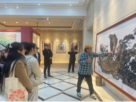 3月15日,在院长助理杨树文副教授带领下,我院绘画专业(中国画方向)本科生和美术与书法专业硕士研究生走进重庆市大渡口区梅忠智美术馆,与著名花鸟画家、美术教育家、四川美术学院梅忠智教授面对面交流学习,感受中国画艺术魅力。这是我院持续开展重庆市绘画一流专业建设的举措之一,旨在帮助学生拓宽艺术视野,提高专业素养。