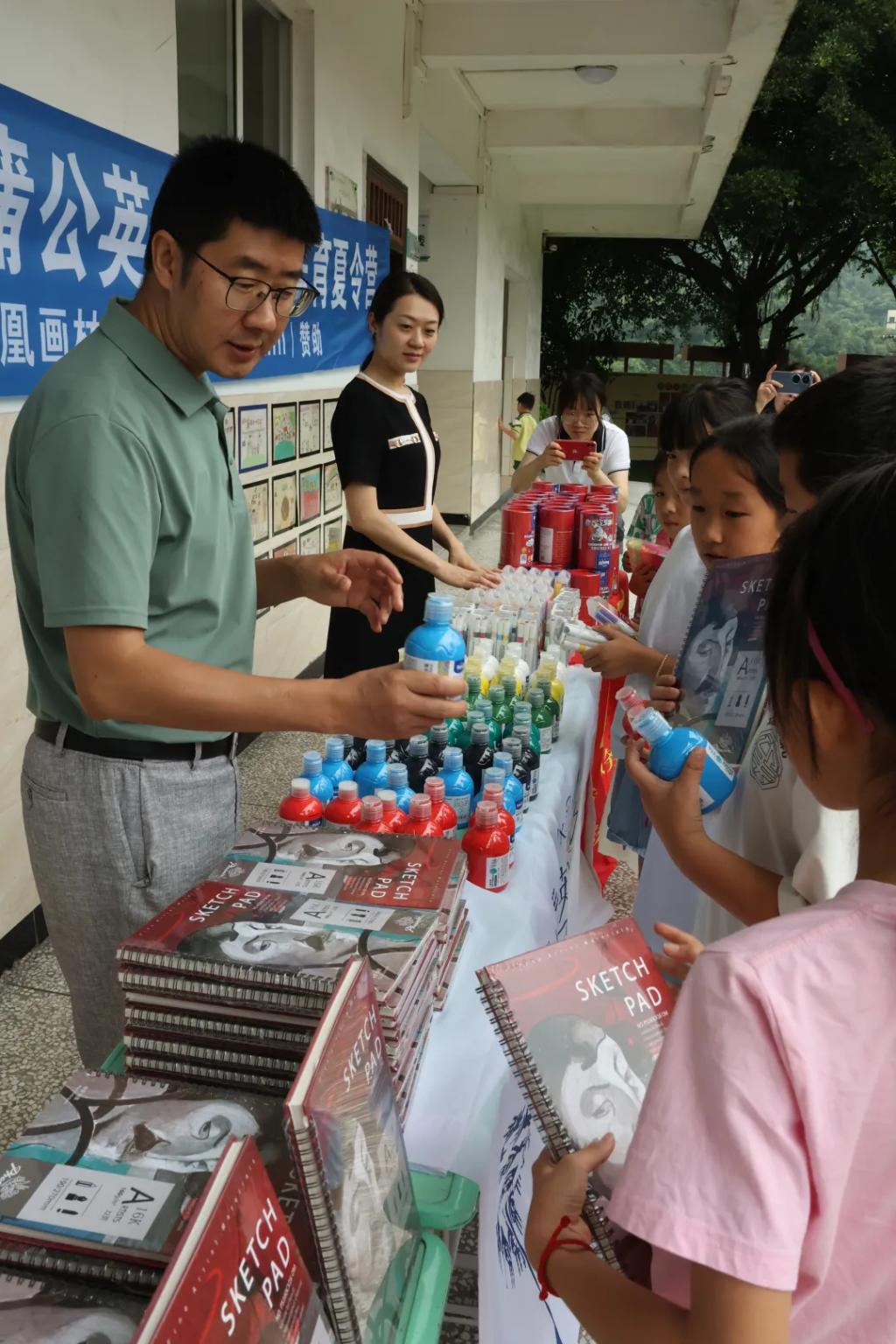罗晓欢院长和丁睿副书记还向附二小105名孩子赠送了精心准备的画材礼包,预祝此次美育夏令营活动取得圆满成功,期待孩子们在美育浸润下,能够不断进步,茁壮成长。