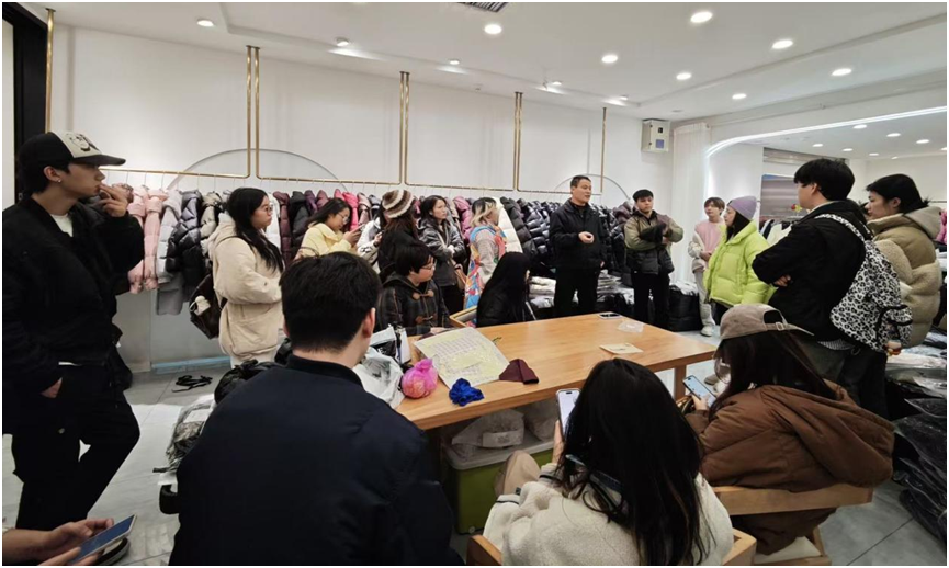 12月9日,2022级服装与服饰设计1班的二十余名同学在卢映洁老师的带领下,到重庆渝派服饰开启“学年项目设计与实践”课程实践活动,参观了“城渝君服饰”工厂。